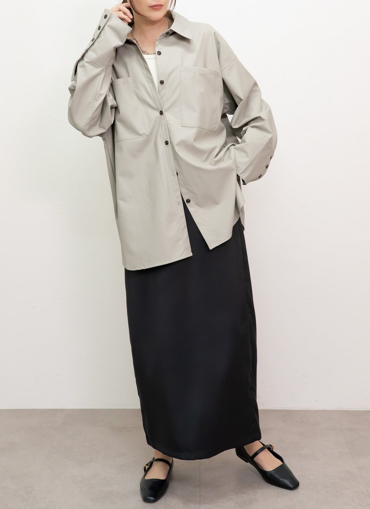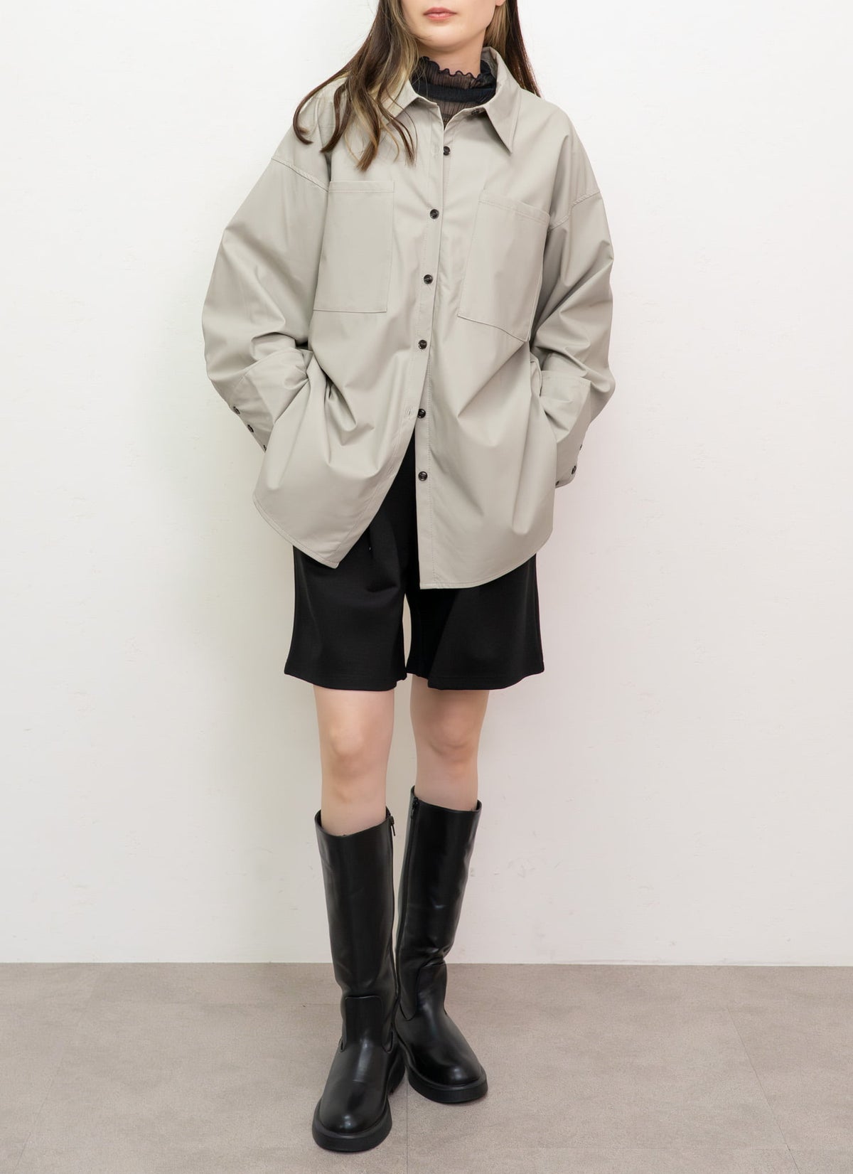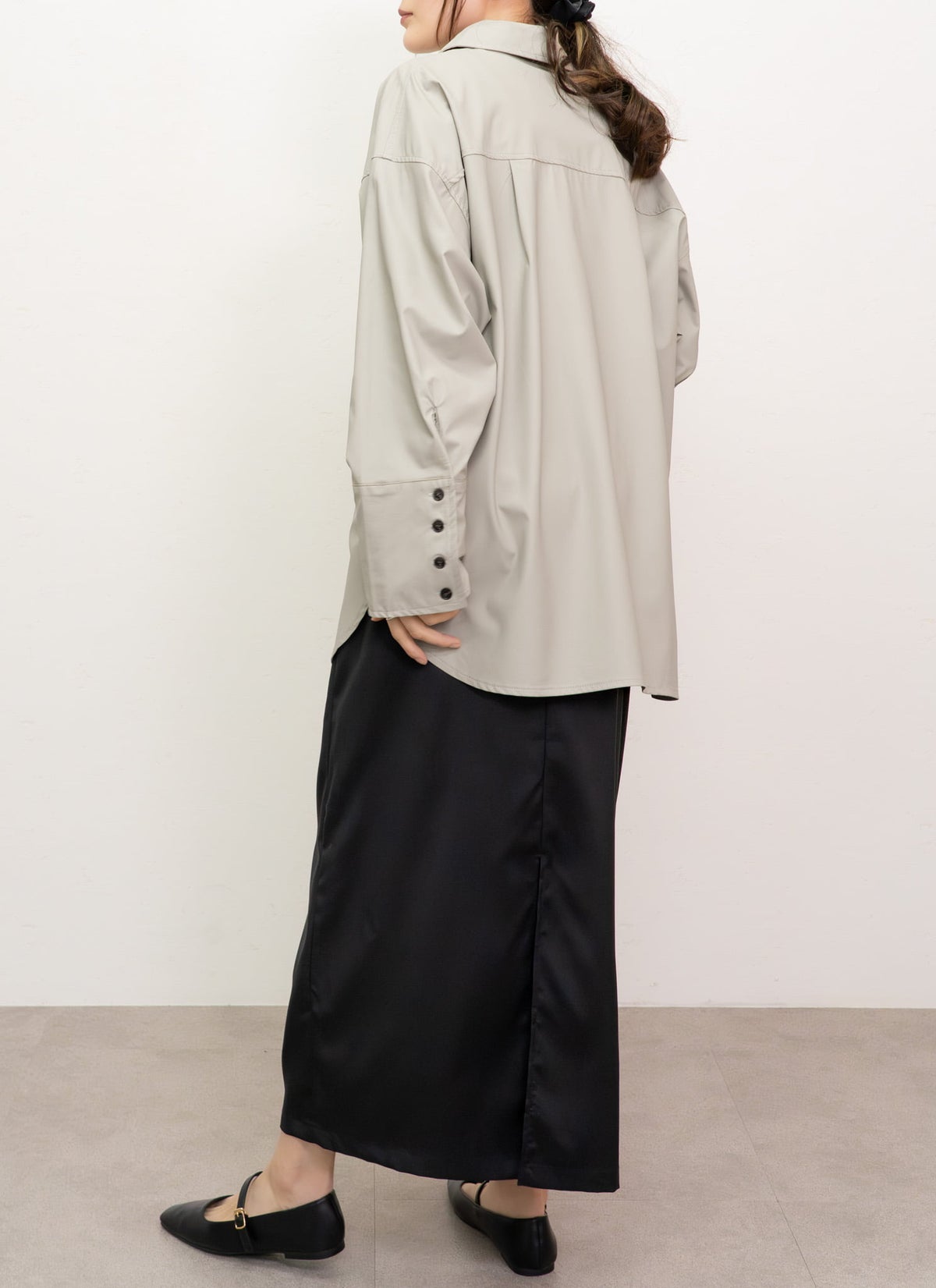 revoam【レザーの気品を、日常に。洗える贅沢を纏うビッグシャツ】 ウォッシャブルフェイクレザービッグシャツ