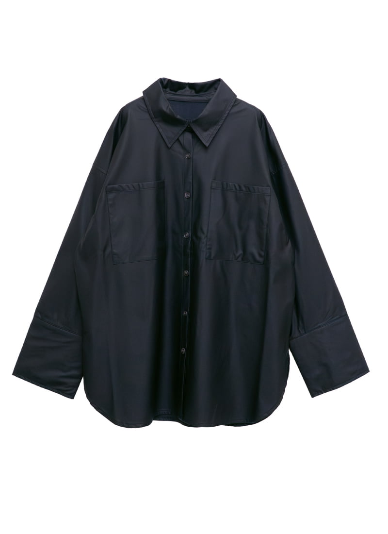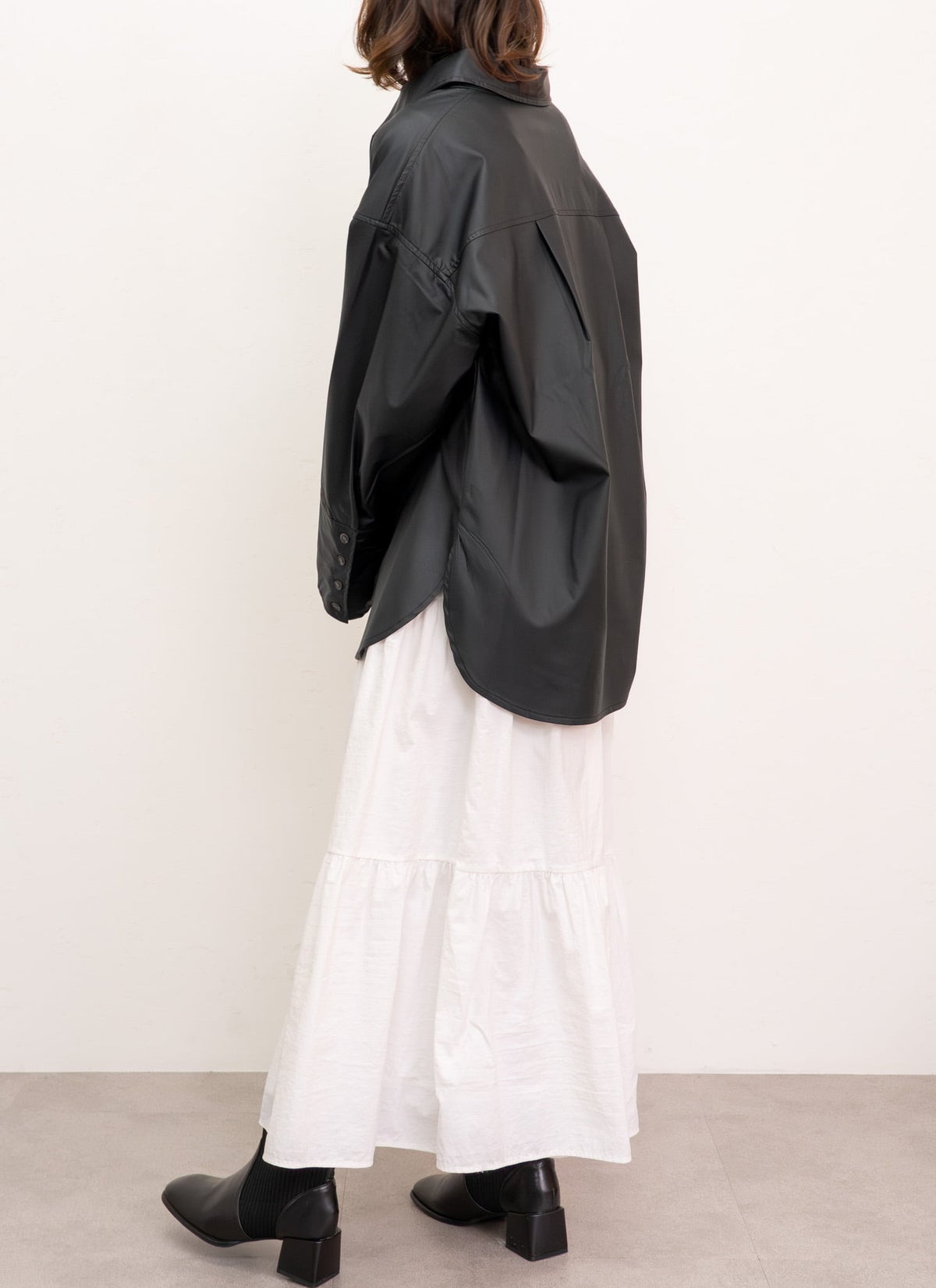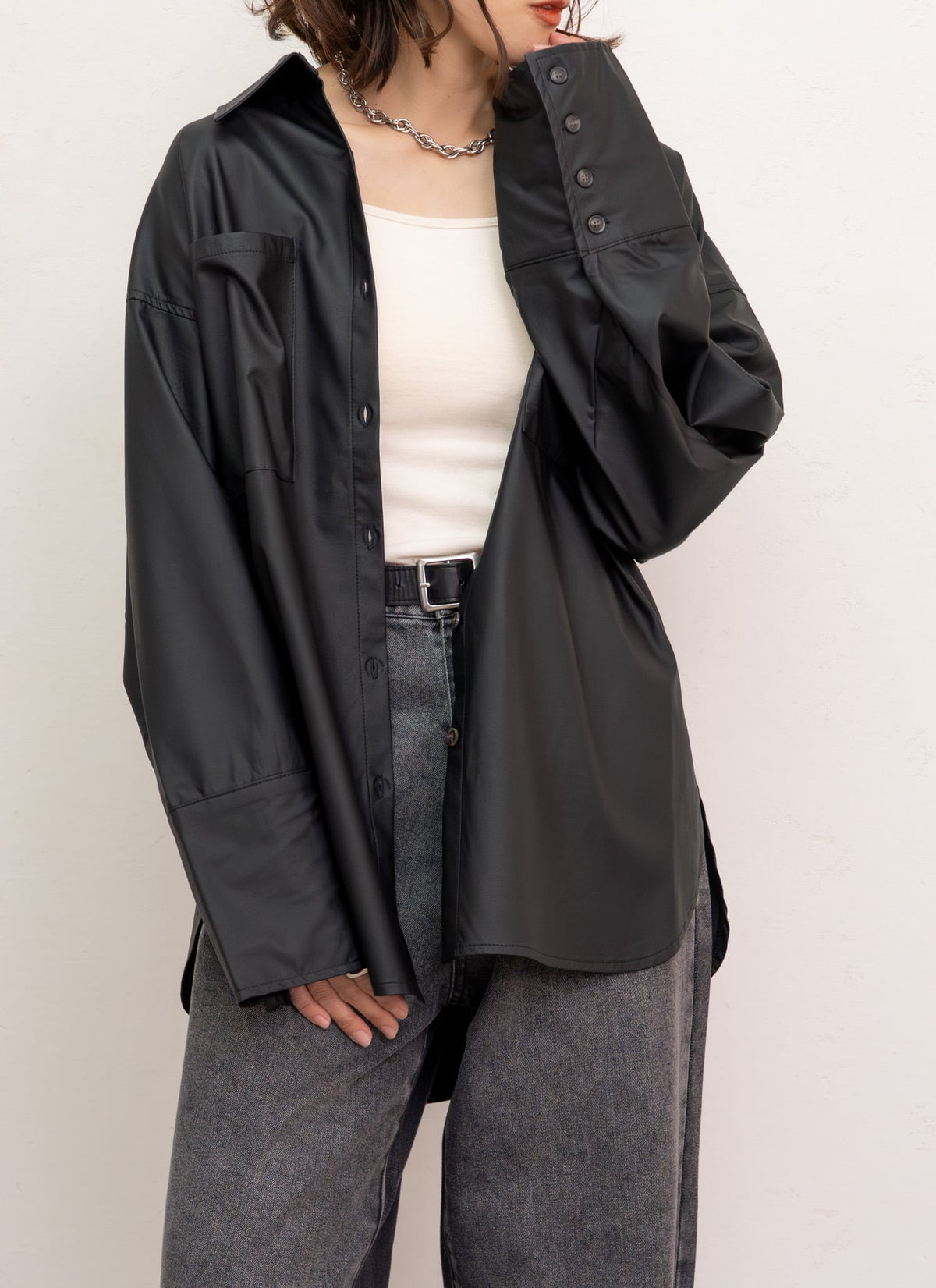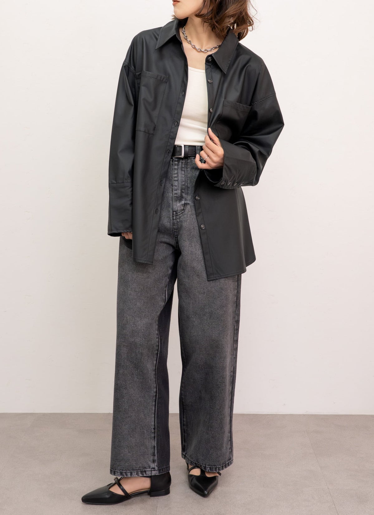 revoam【レザーの気品を、日常に。洗える贅沢を纏うビッグシャツ】 ウォッシャブルフェイクレザービッグシャツ