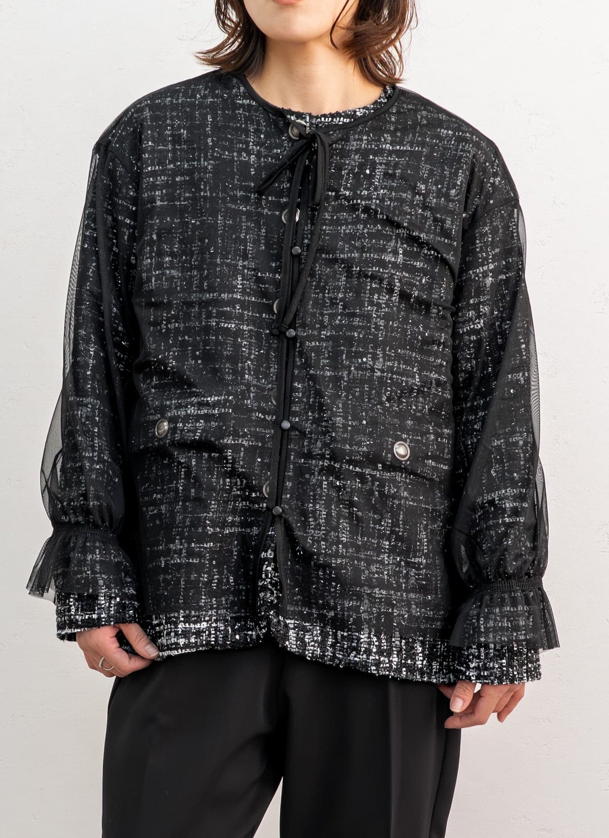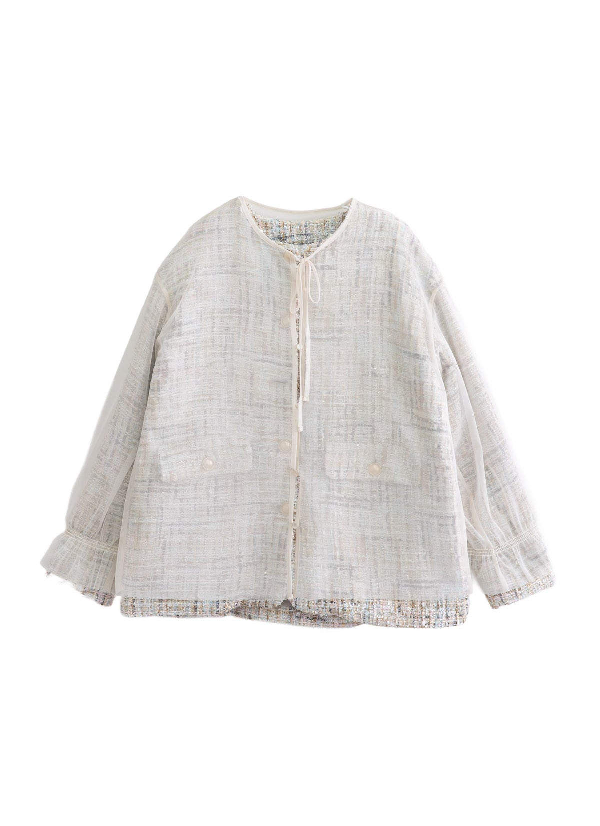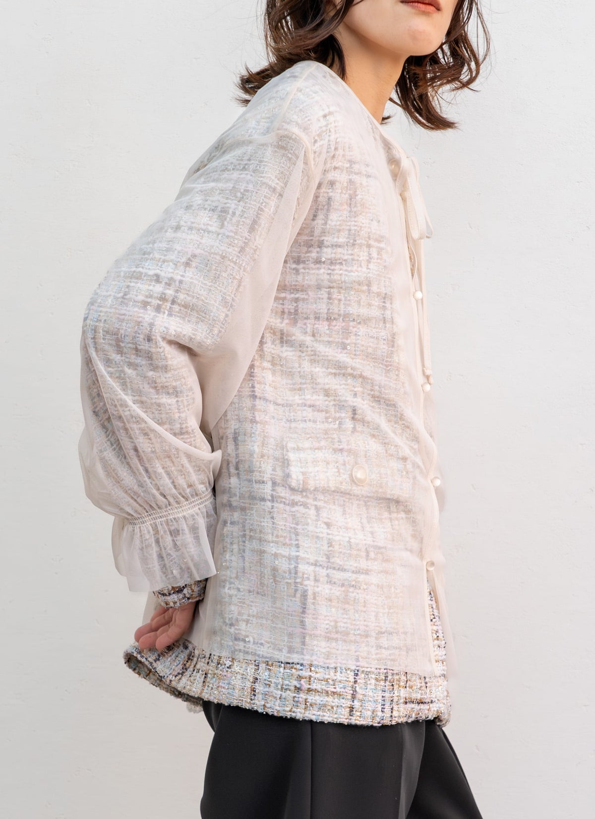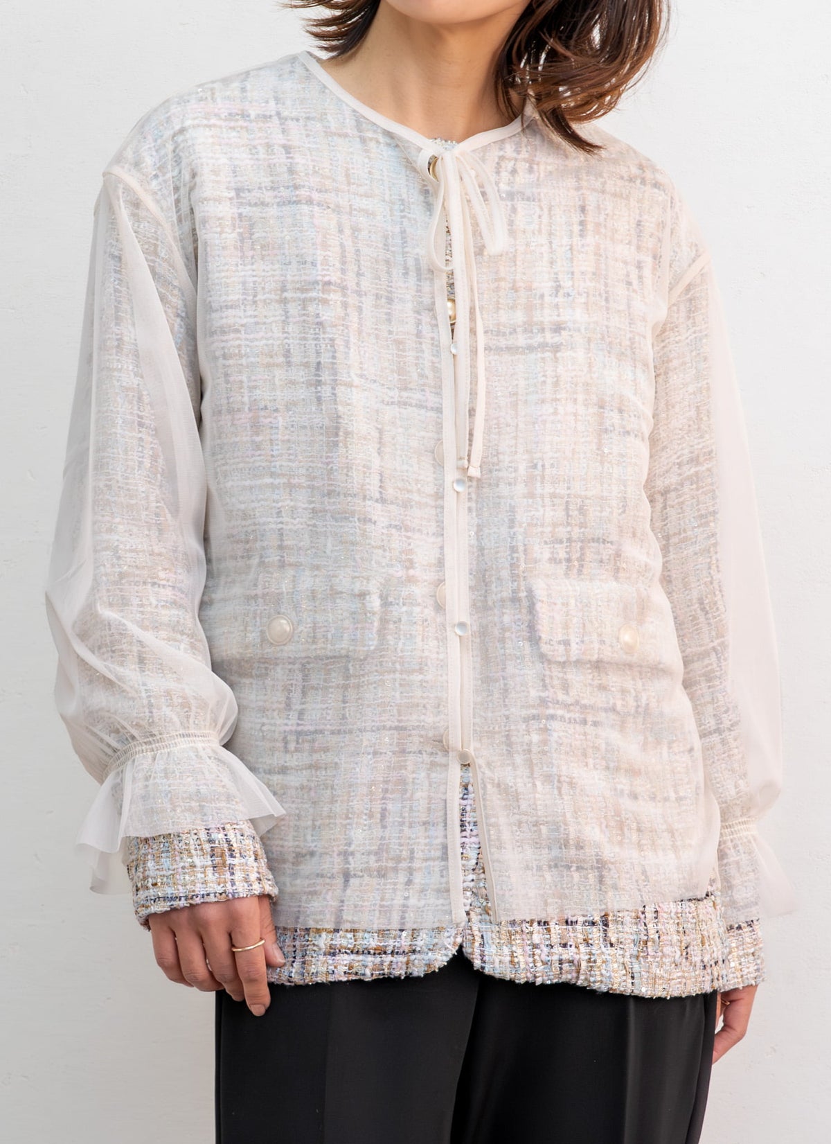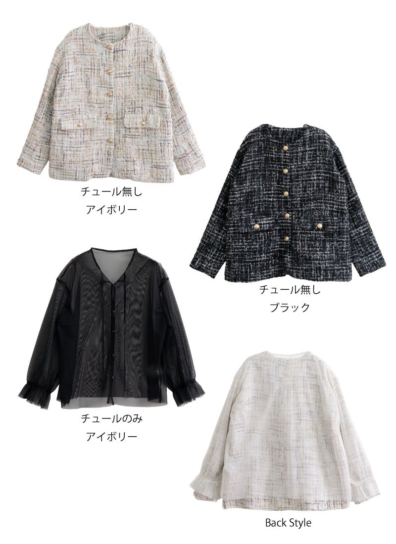 revoam【1着で4通り。チュールを脱いでも、前後を入れ替えても、主役級の存在感】 ツイードチュールレイヤードジャケット