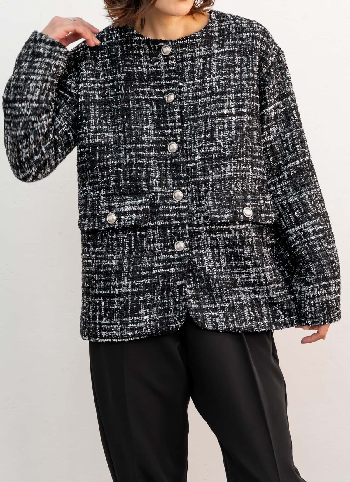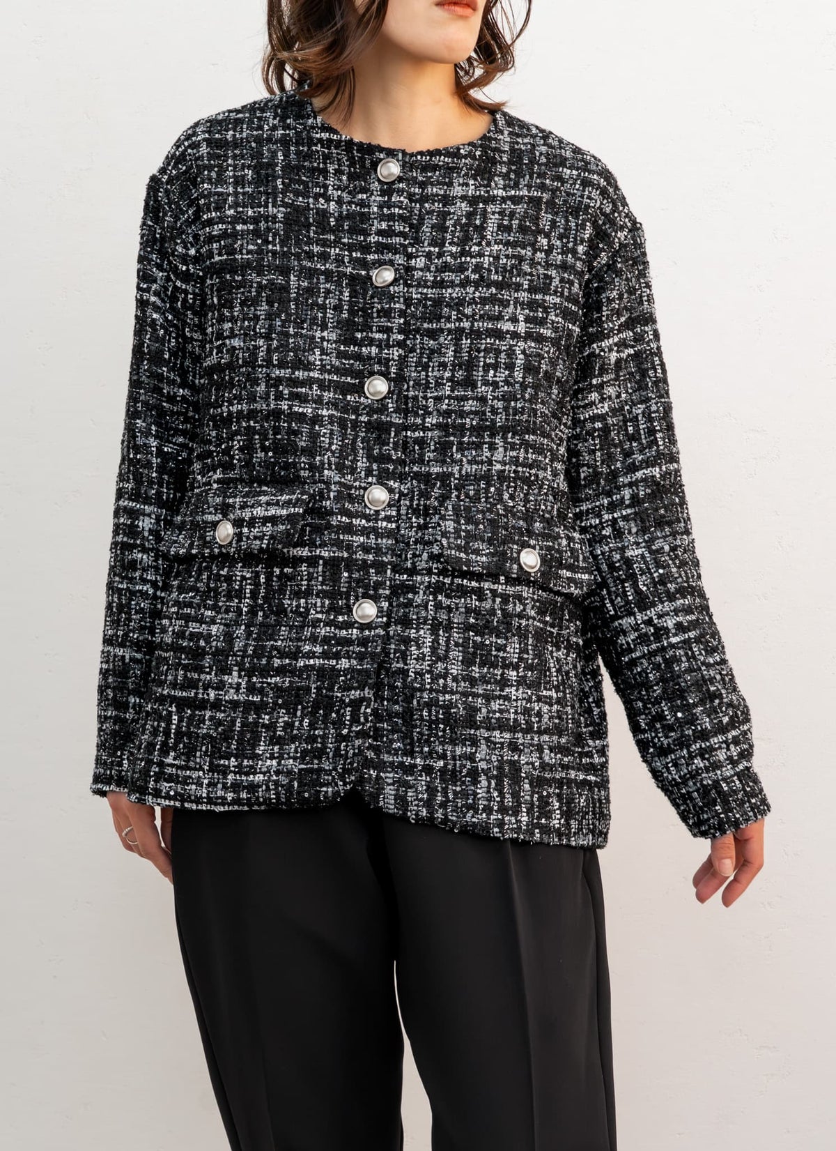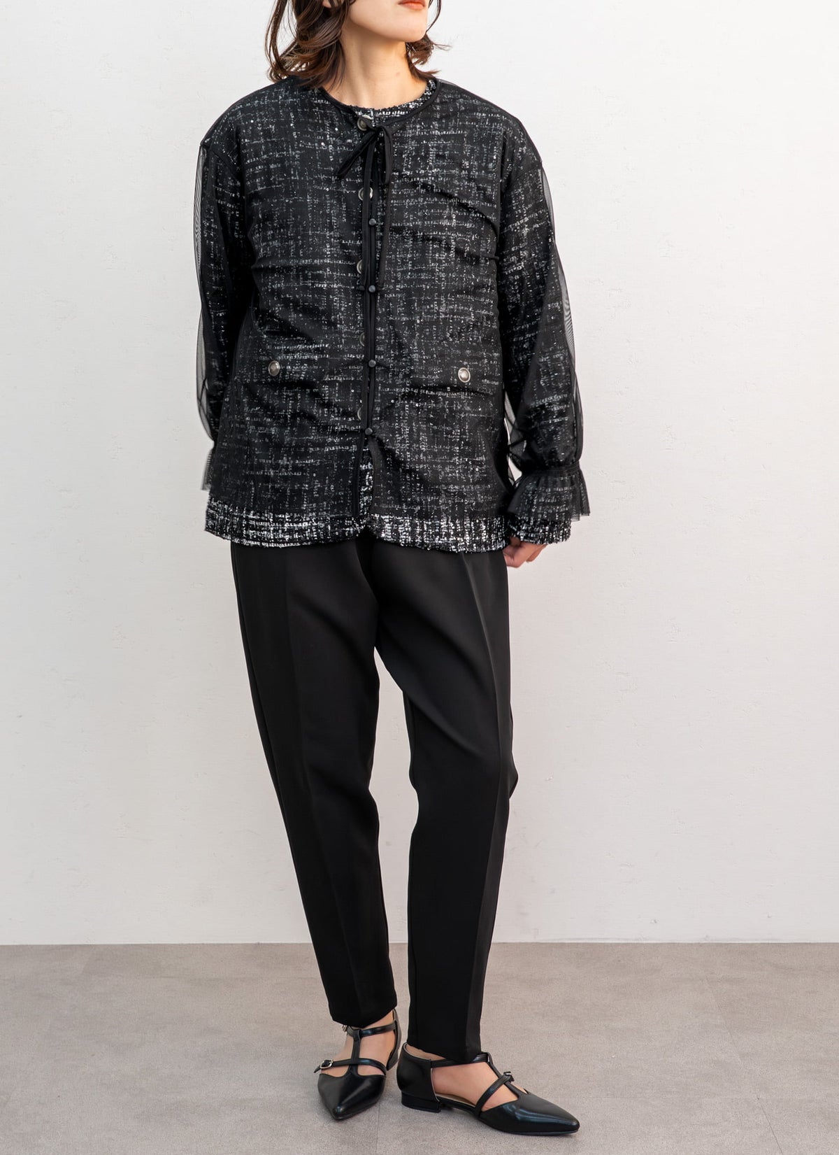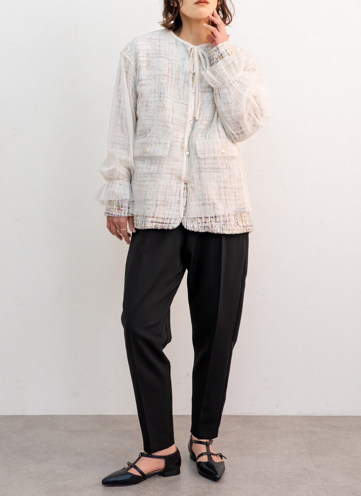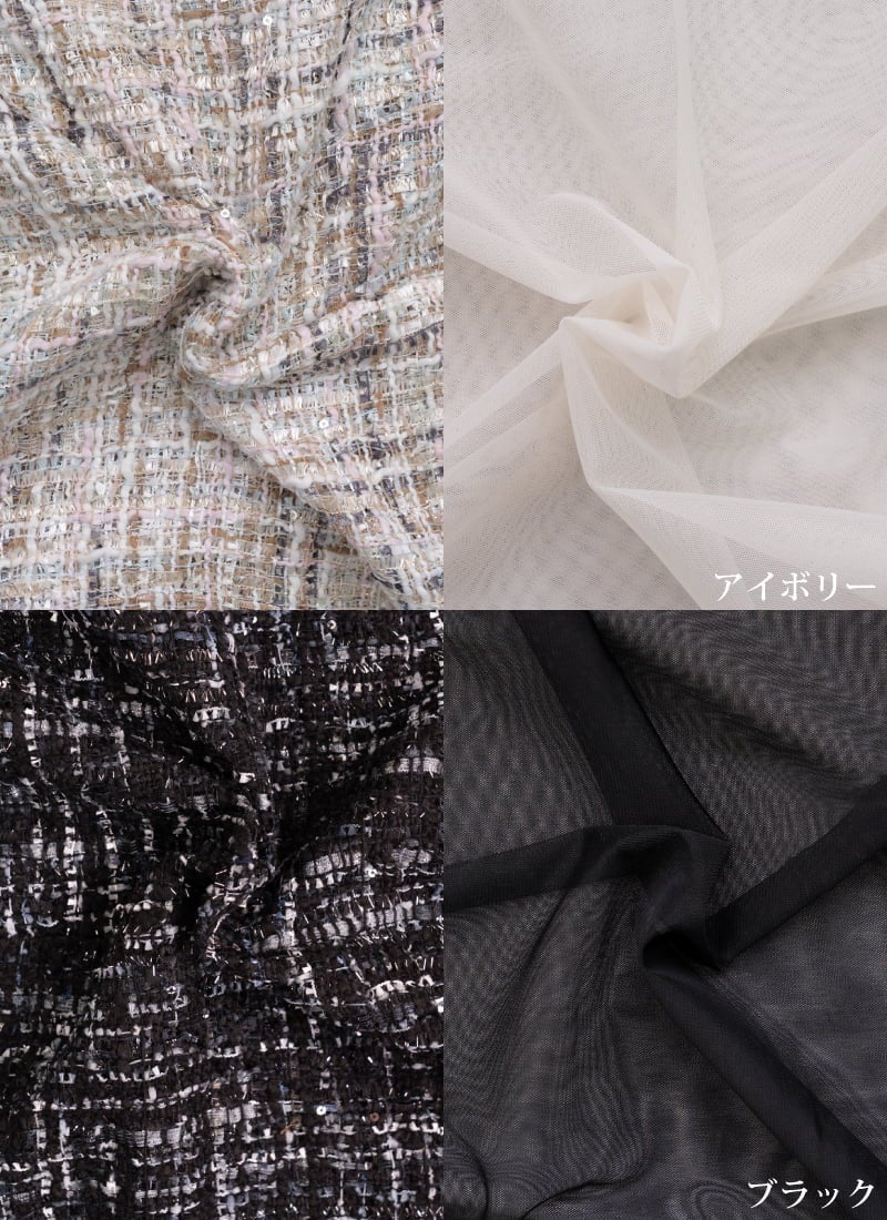 revoam【1着で4通り。チュールを脱いでも、前後を入れ替えても、主役級の存在感】 ツイードチュールレイヤードジャケット