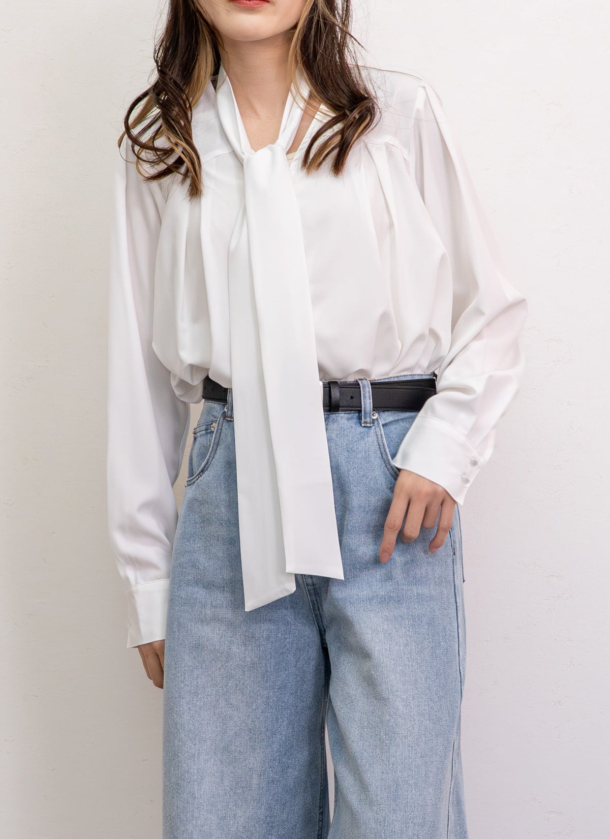revoam【結び方ひとつで、表情が変わる。日常を格上げする大人のボウタイブラウス】 タイ付きブラウス