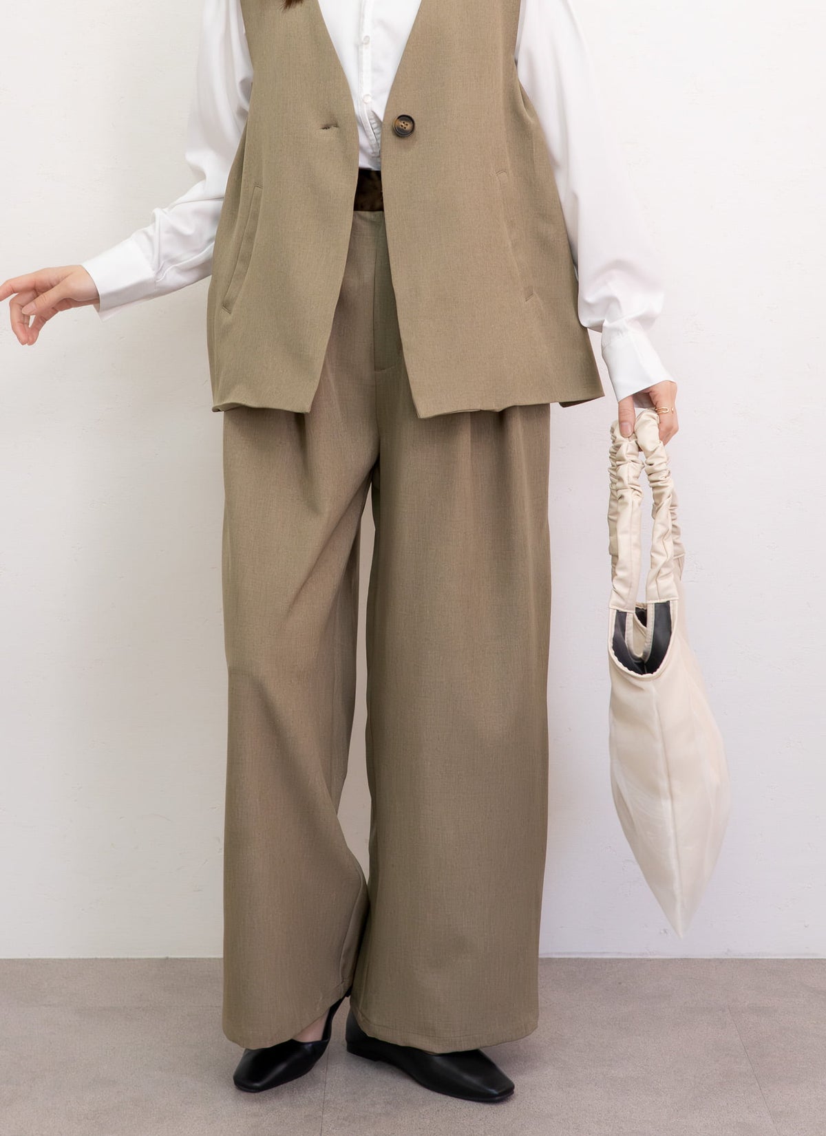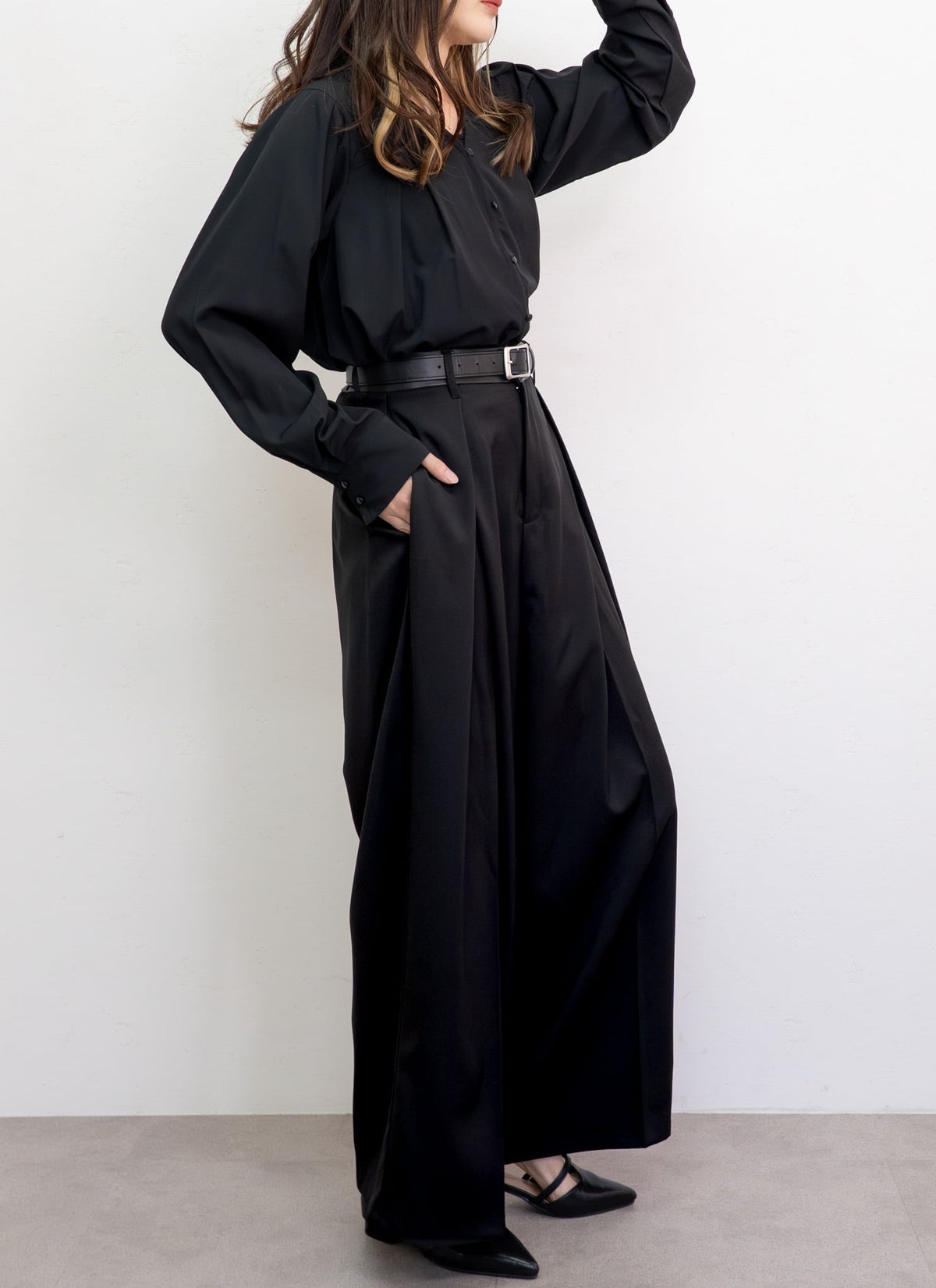 revoam【贅沢なタックがつくる、立体美シルエット】 ウォッシャブルフェイクレザータックパンツ