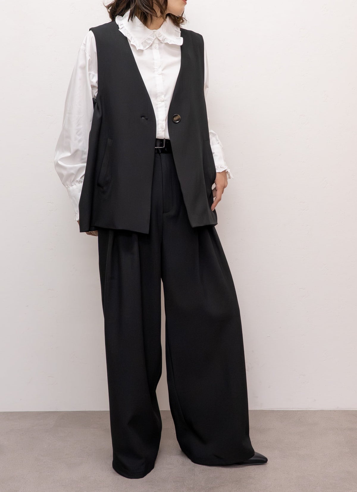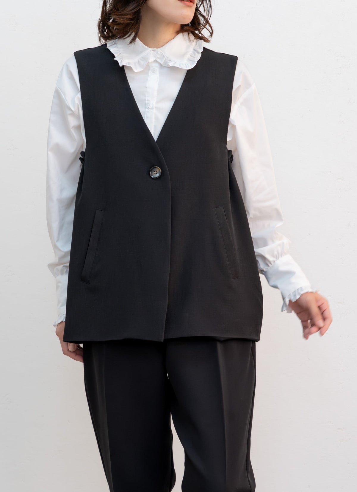 revoam【重ねるだけで、日常がドレスアップ。シルエットで魅せる、究極の着映えジレ】 タックベスト