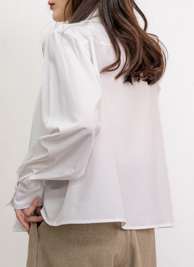 ボリュームのあるボウタイが胸元にアクセントを作るため、視線を上に集め、小顔効果や全体のバランスアップが期待できます。
