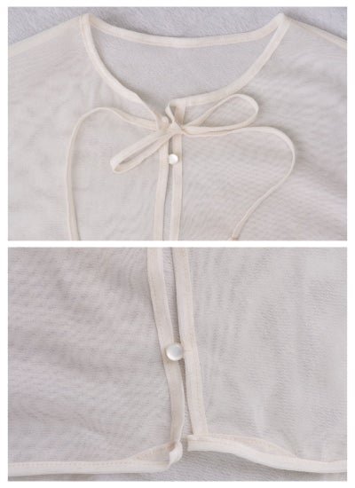 チュールのふんわりとしたボリュームが、気になる二の腕のラインを優しくカバーし、スッキリと見せてくれます。