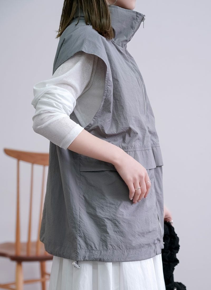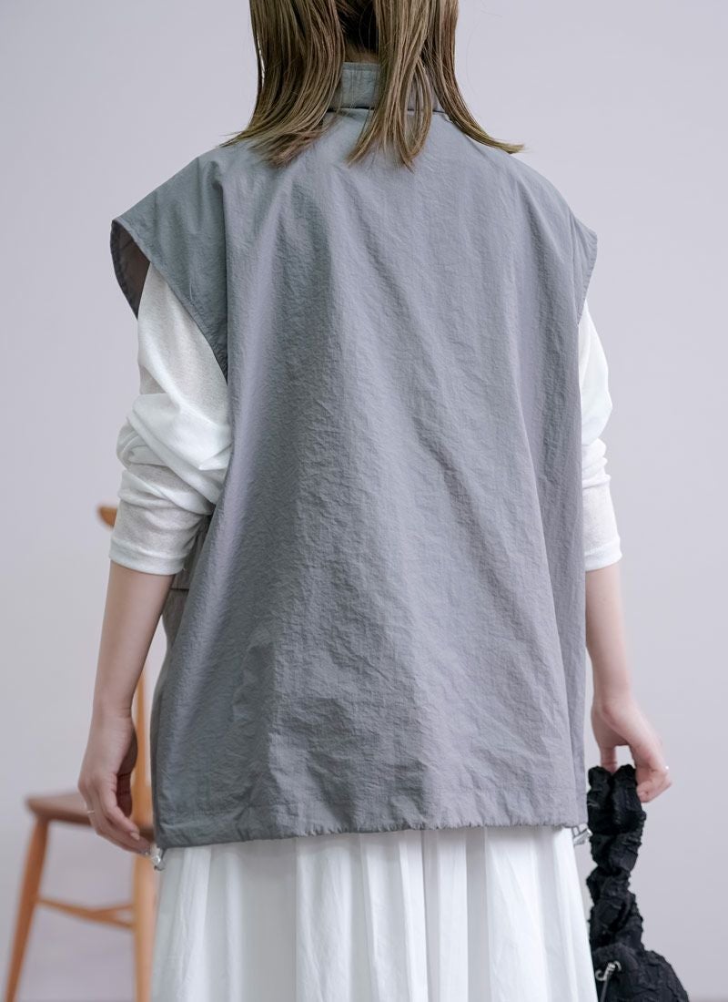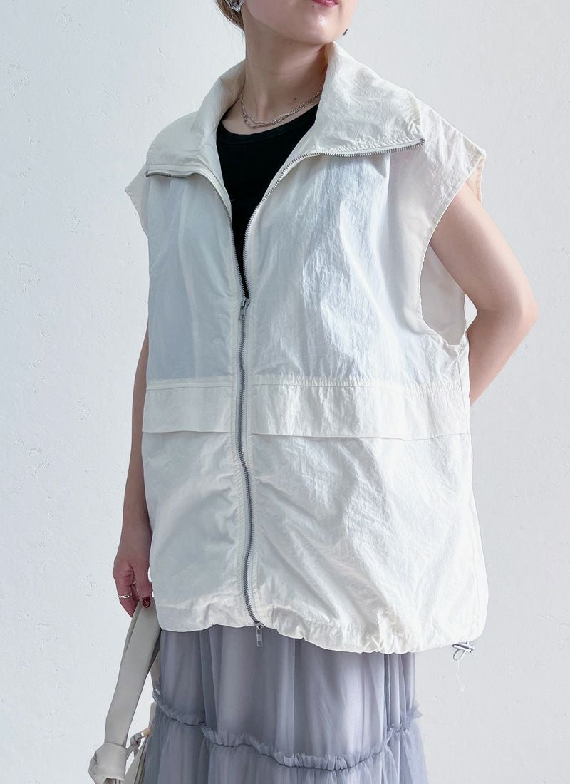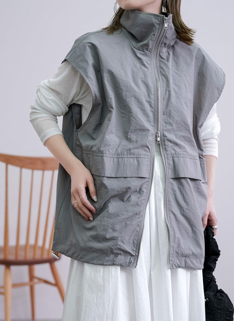 revoam【一枚重ねるだけで、こなれ感アップ。ラフで軽やかなナイロンベストは、大人カジュアルの新定番】 【20%OFF】ワッシャースタンドナイロンベスト