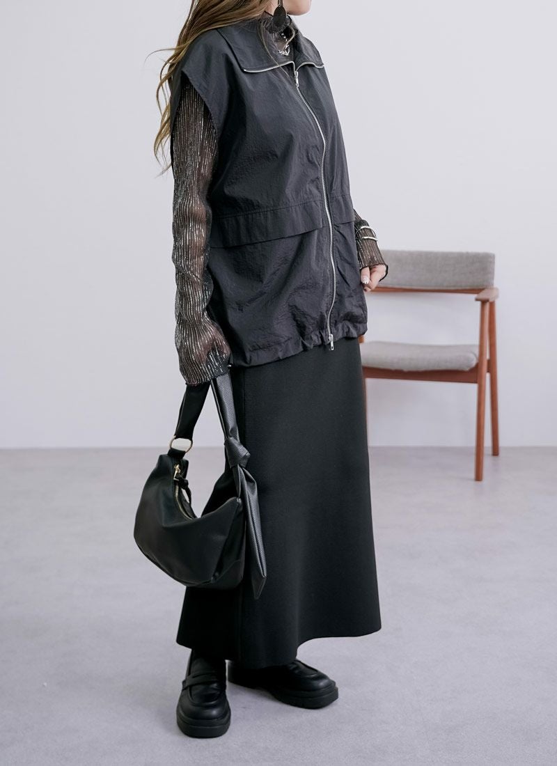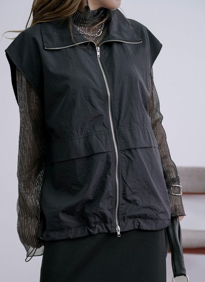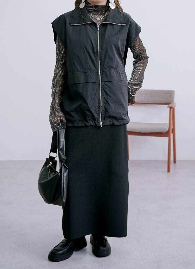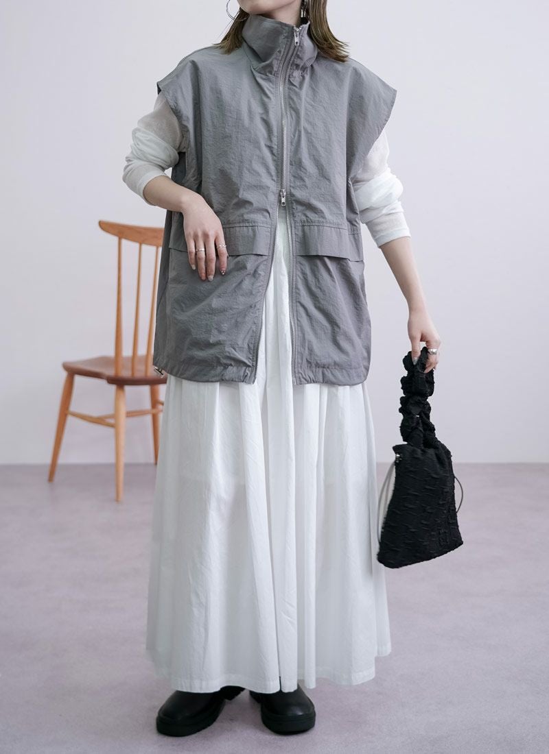 revoam【一枚重ねるだけで、こなれ感アップ。ラフで軽やかなナイロンベストは、大人カジュアルの新定番】 【20%OFF】ワッシャースタンドナイロンベスト