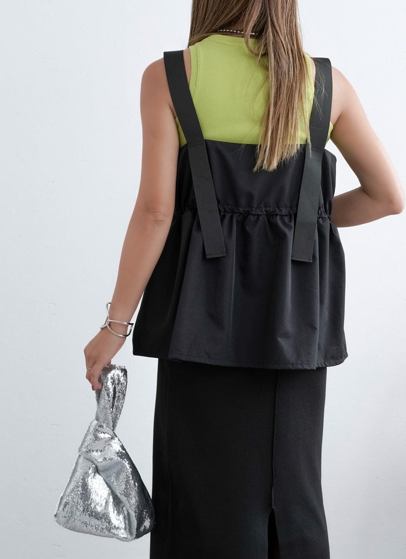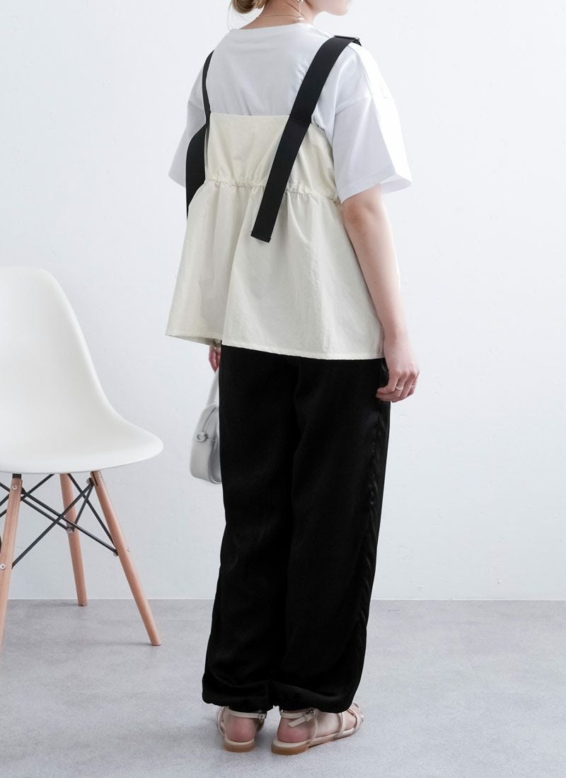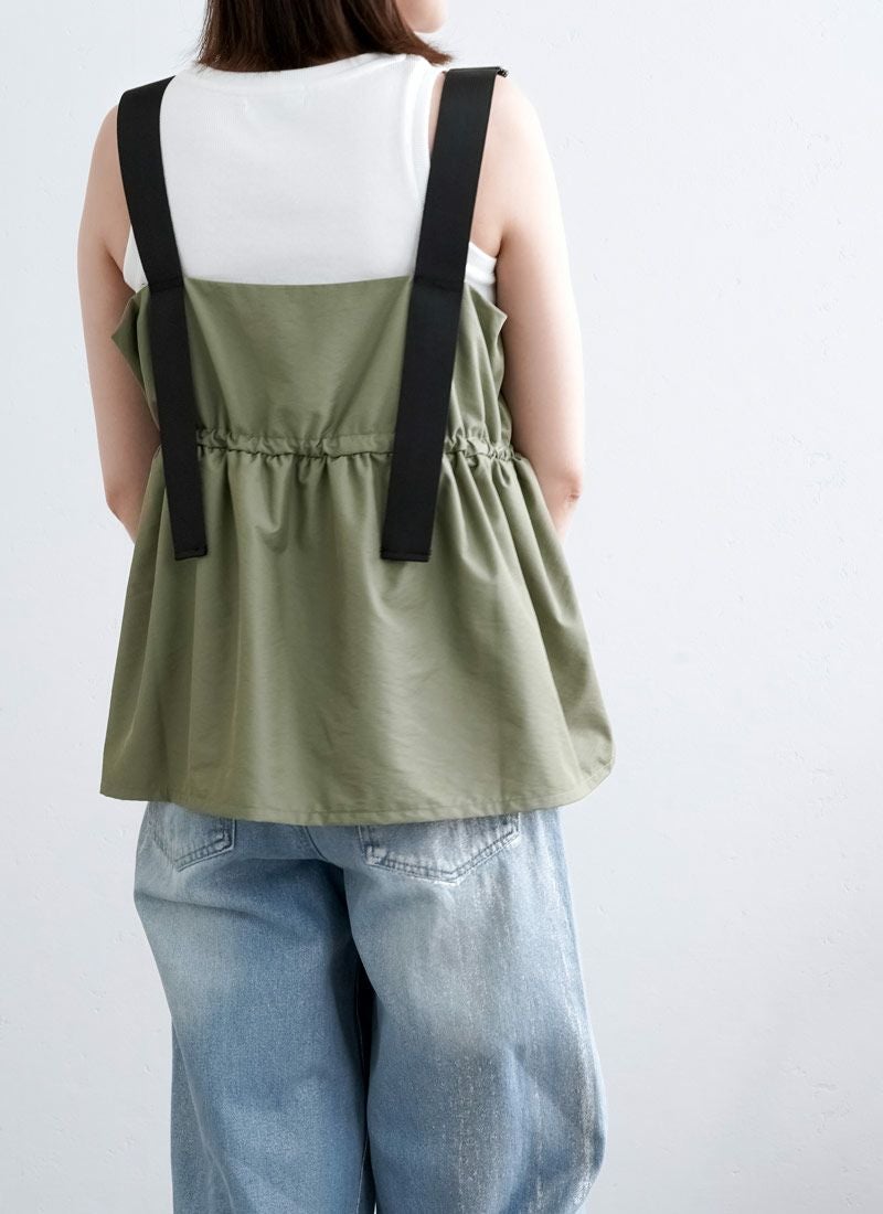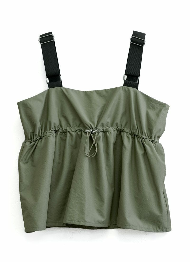 revoam【配色ストラップで魅せる、夏の主役キャミ。ナイロン素材とふんわりシルエットで涼しさも可愛さも両立】 【20%OFF】ナイロン配色ドロストキャミ