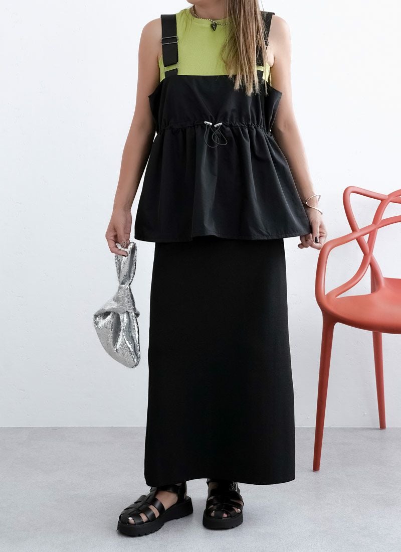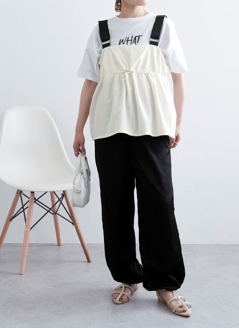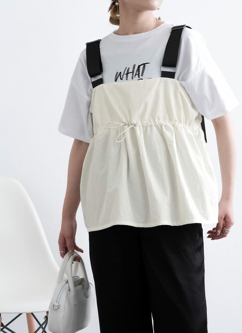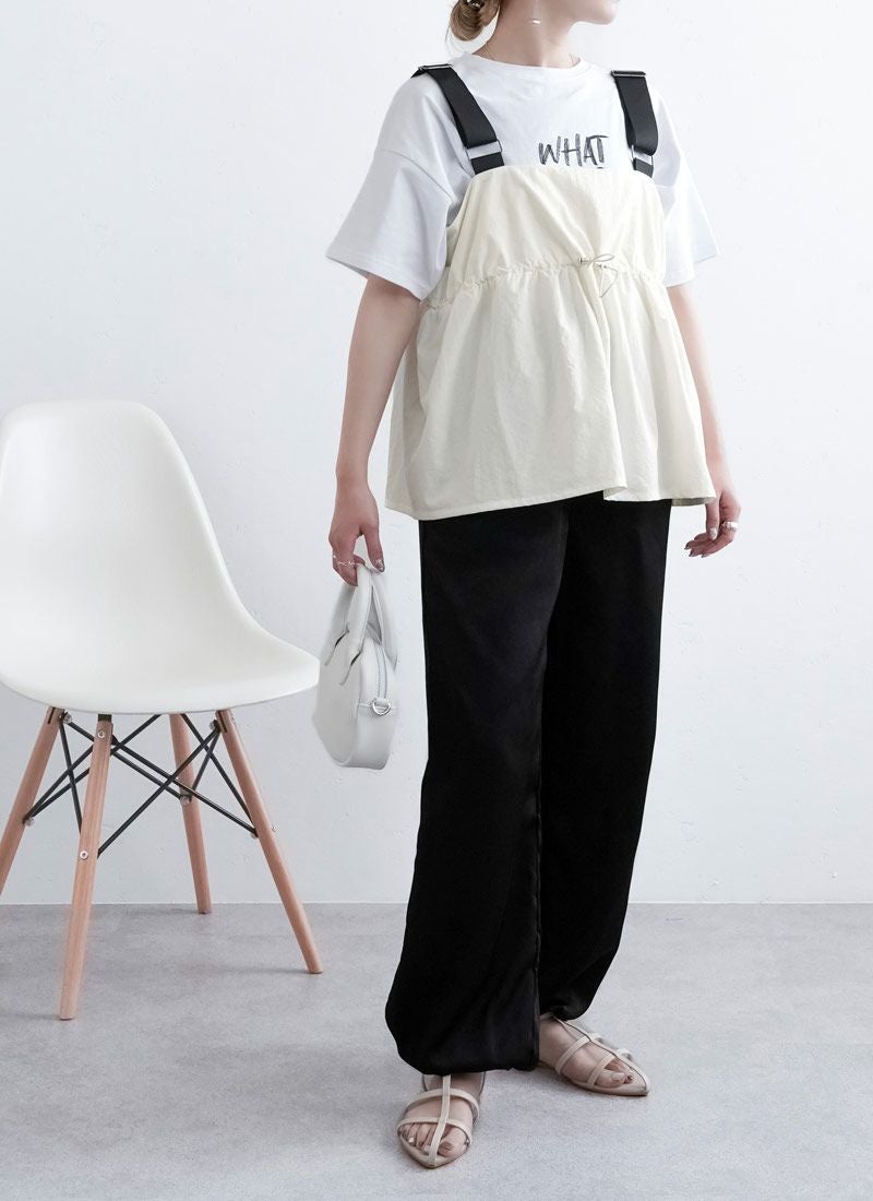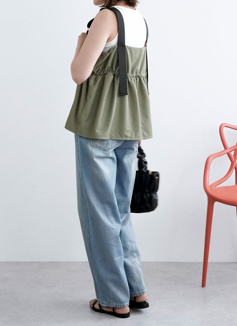 revoam【配色ストラップで魅せる、夏の主役キャミ。ナイロン素材とふんわりシルエットで涼しさも可愛さも両立】 【20%OFF】ナイロン配色ドロストキャミ