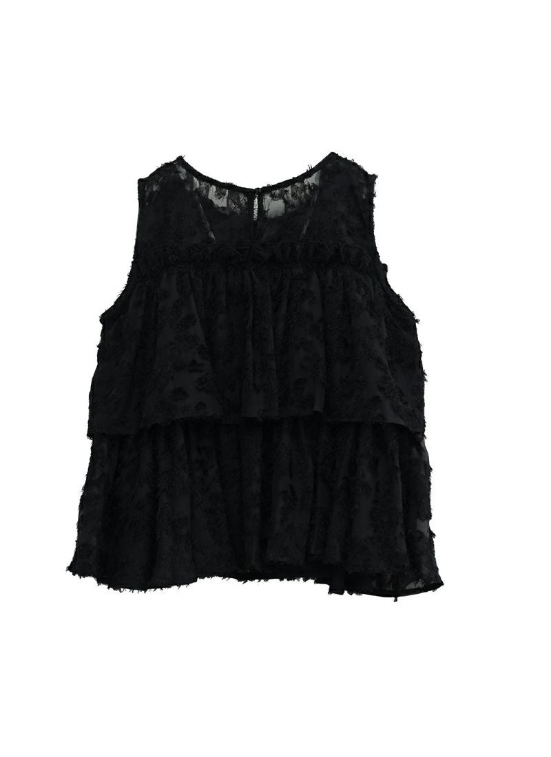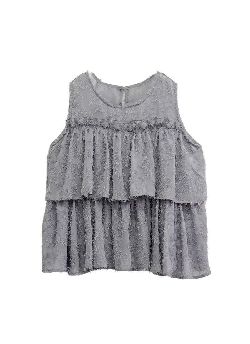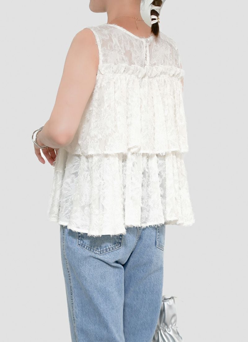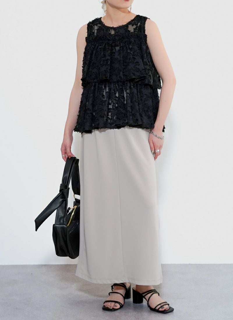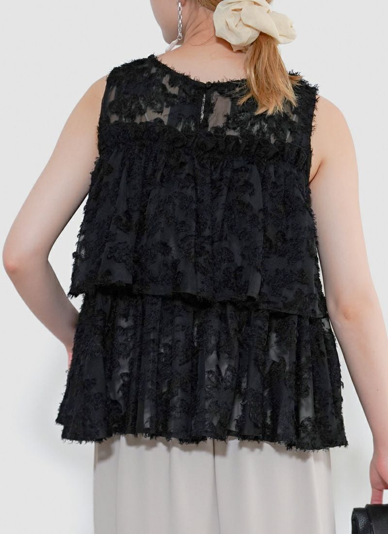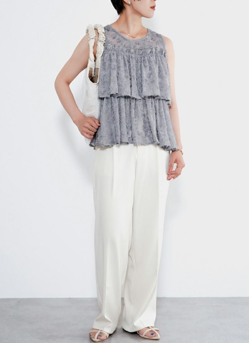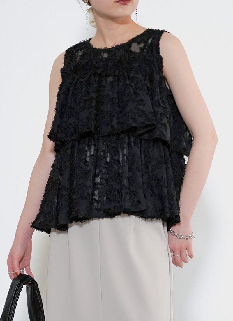 revoam【ふんわり広がるティアードシルエットで、大人フェミニンをさりげなく叶える一枚】 【20%OFF】フリンジジャガード ノースリティアードブラウス