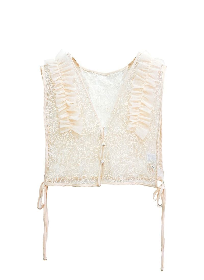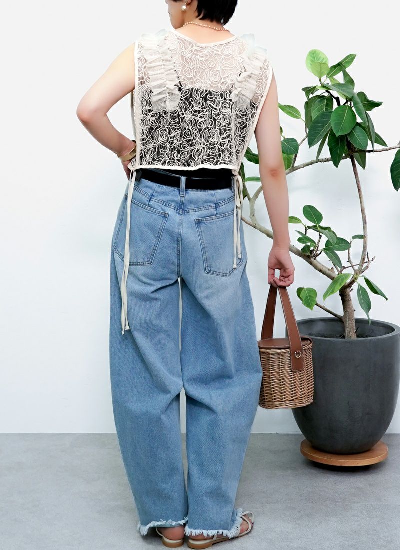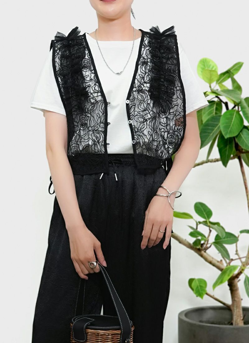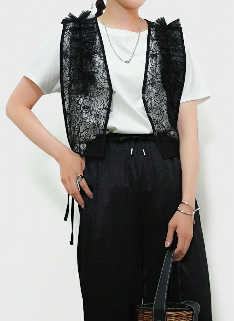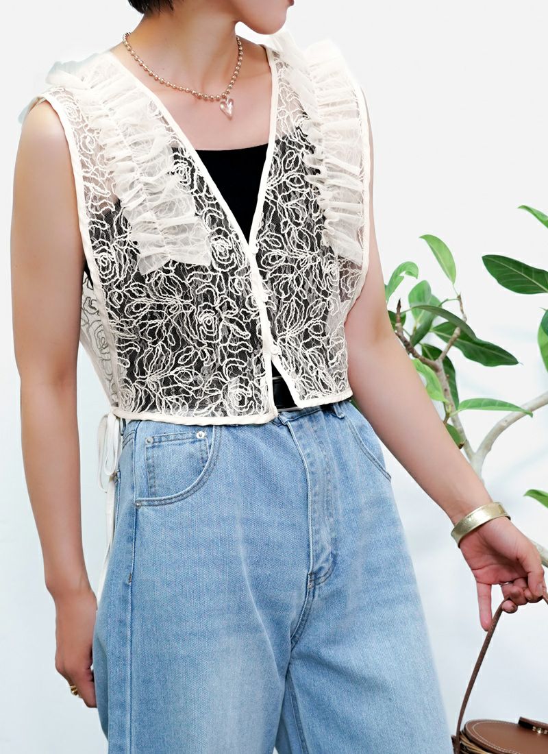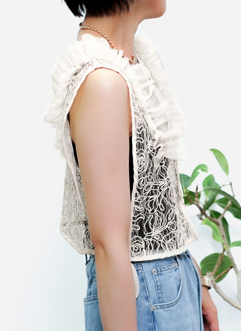 revoam【Tシャツに重ねるだけで、印象チェンジ。カジュアルにもきれいめにも使える着映えアイテム】 【20%OFF】刺繍レース肩フリル 2wayベスト