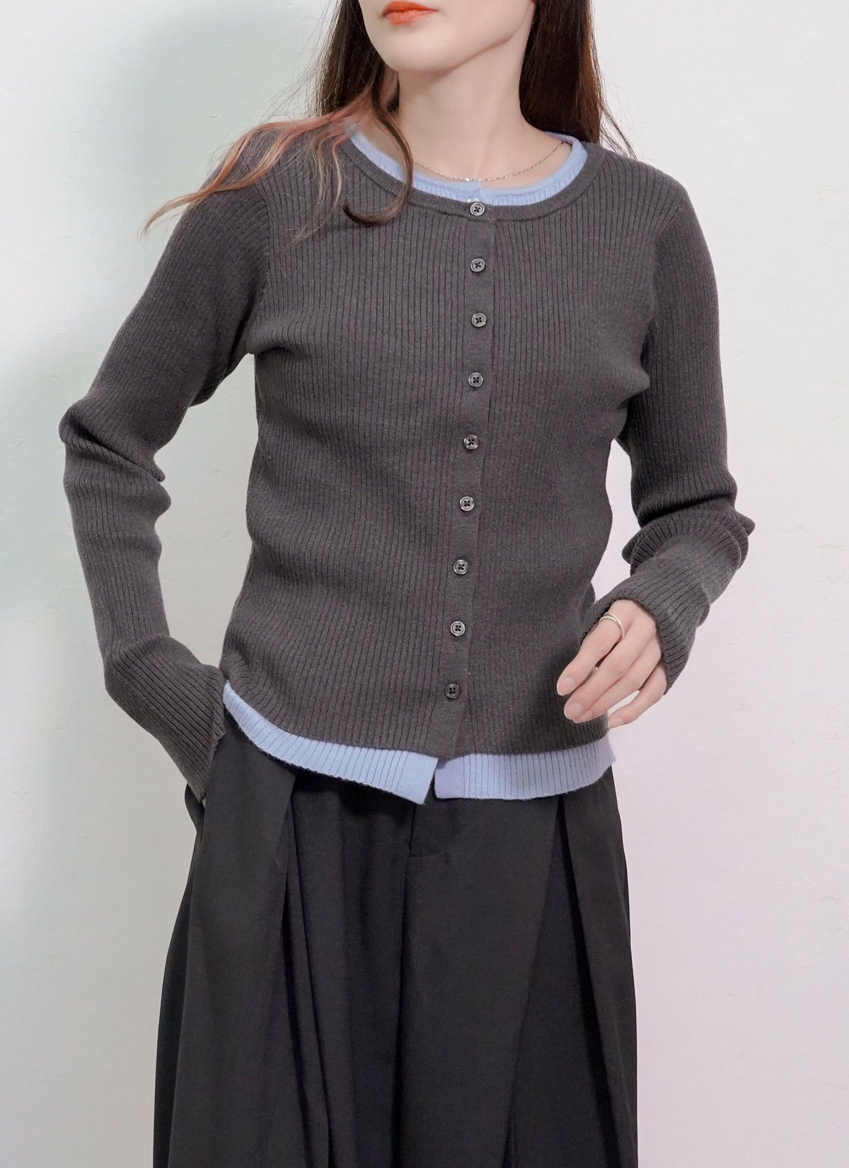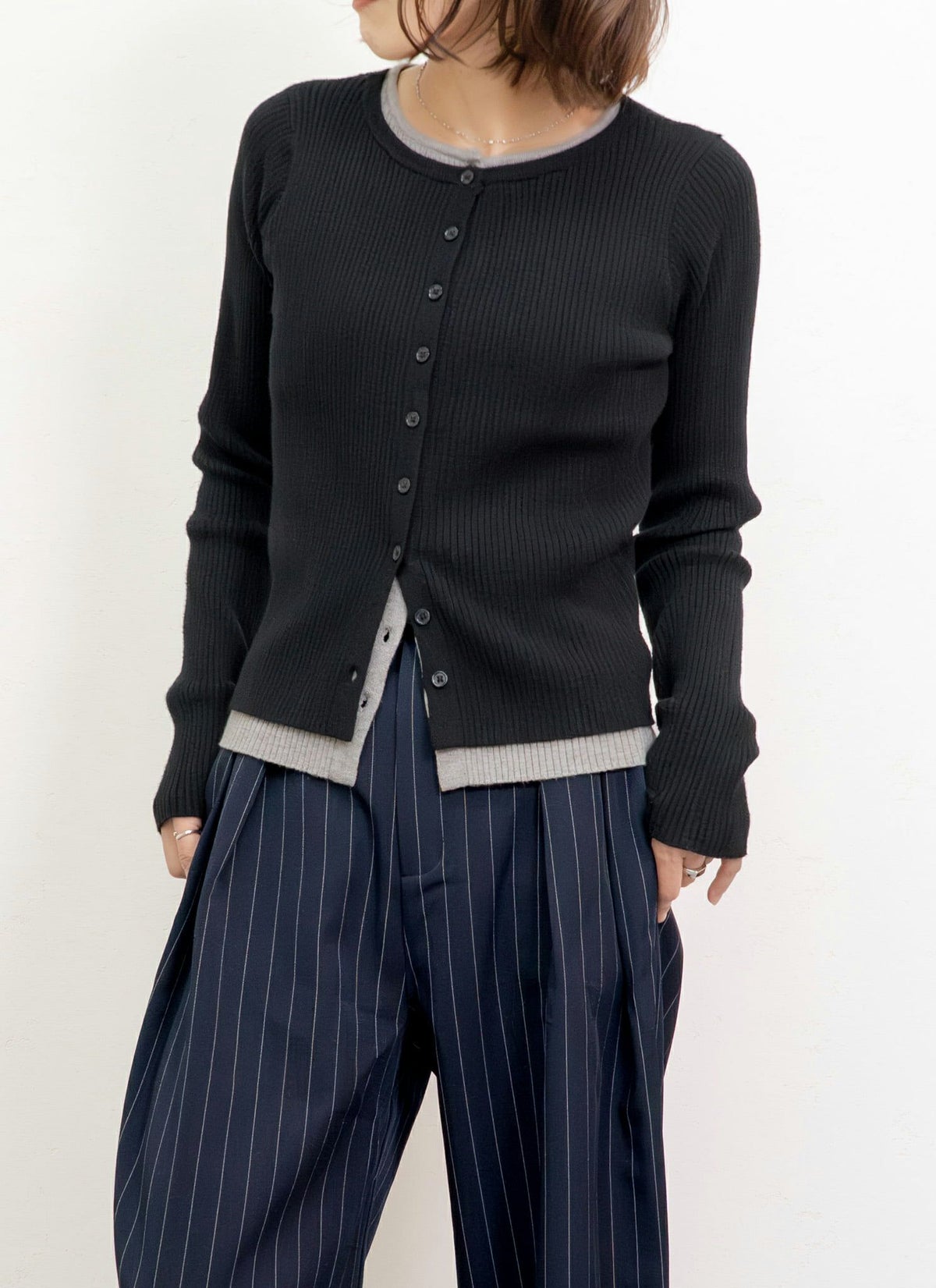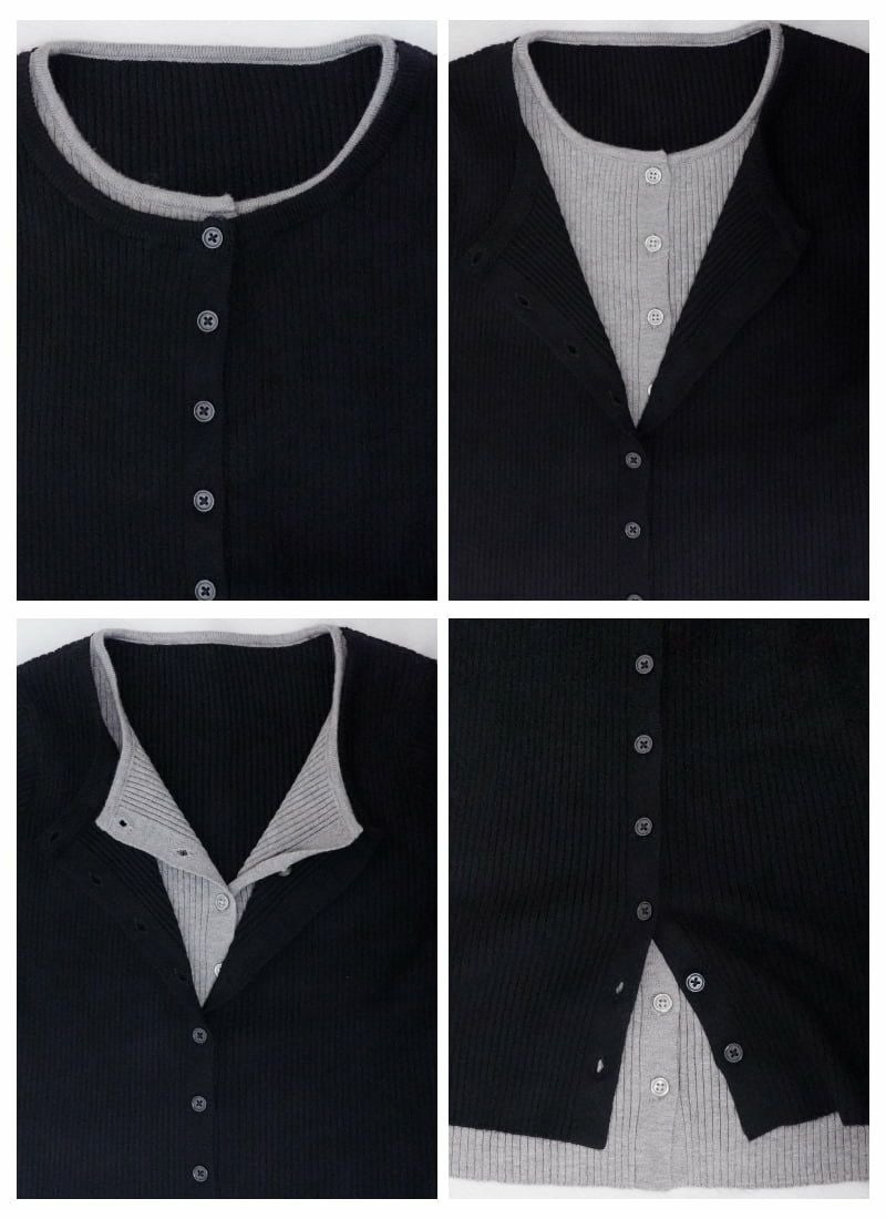 revoam【トレンド感溢れるレイヤードアイテム】 配色レイヤードカーデ