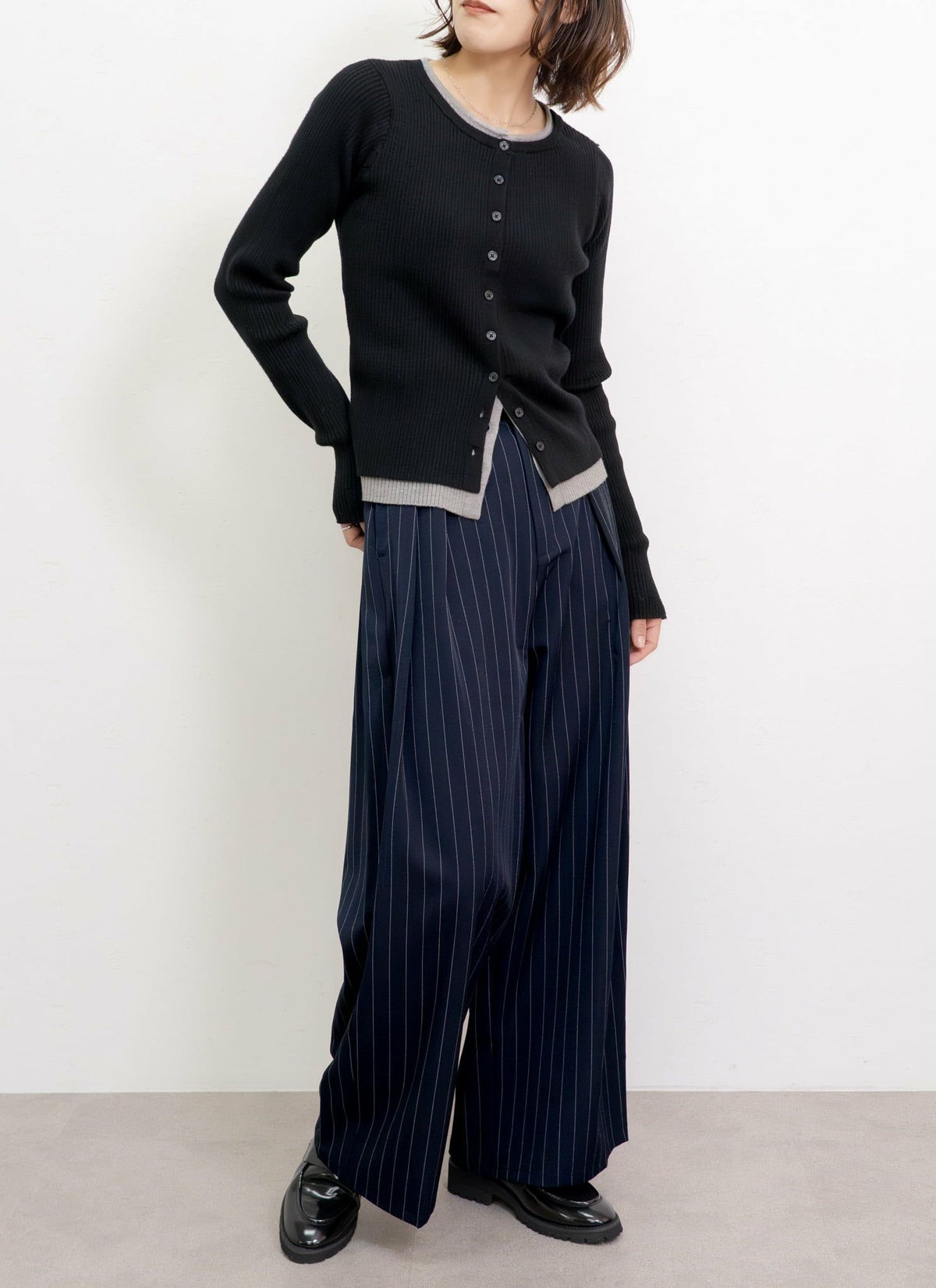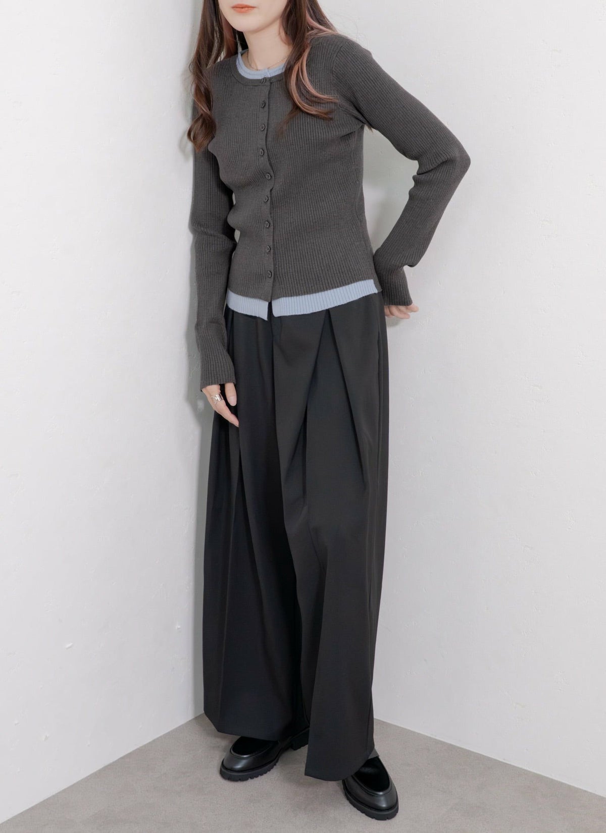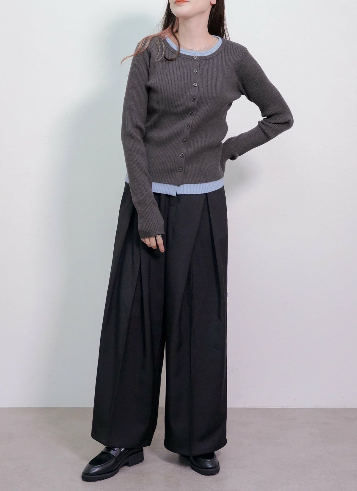 revoam【トレンド感溢れるレイヤードアイテム】 配色レイヤードカーデ