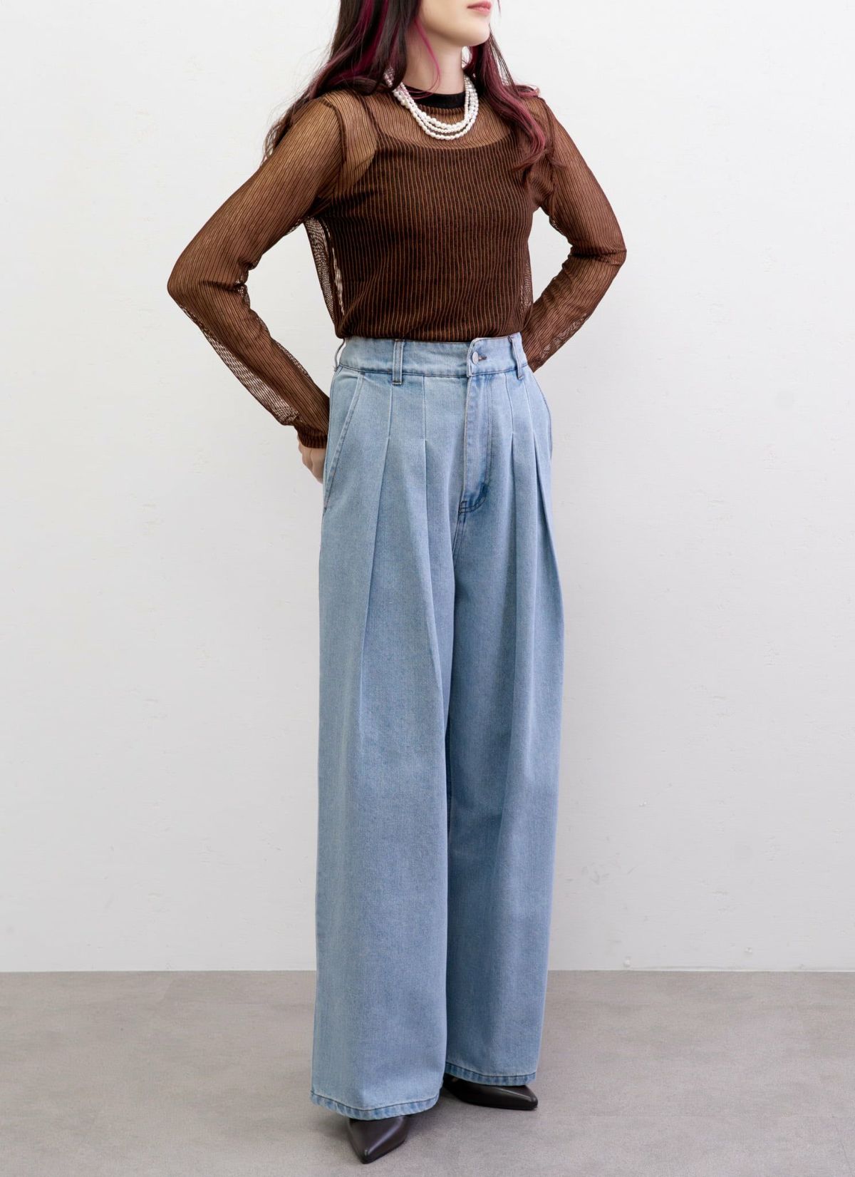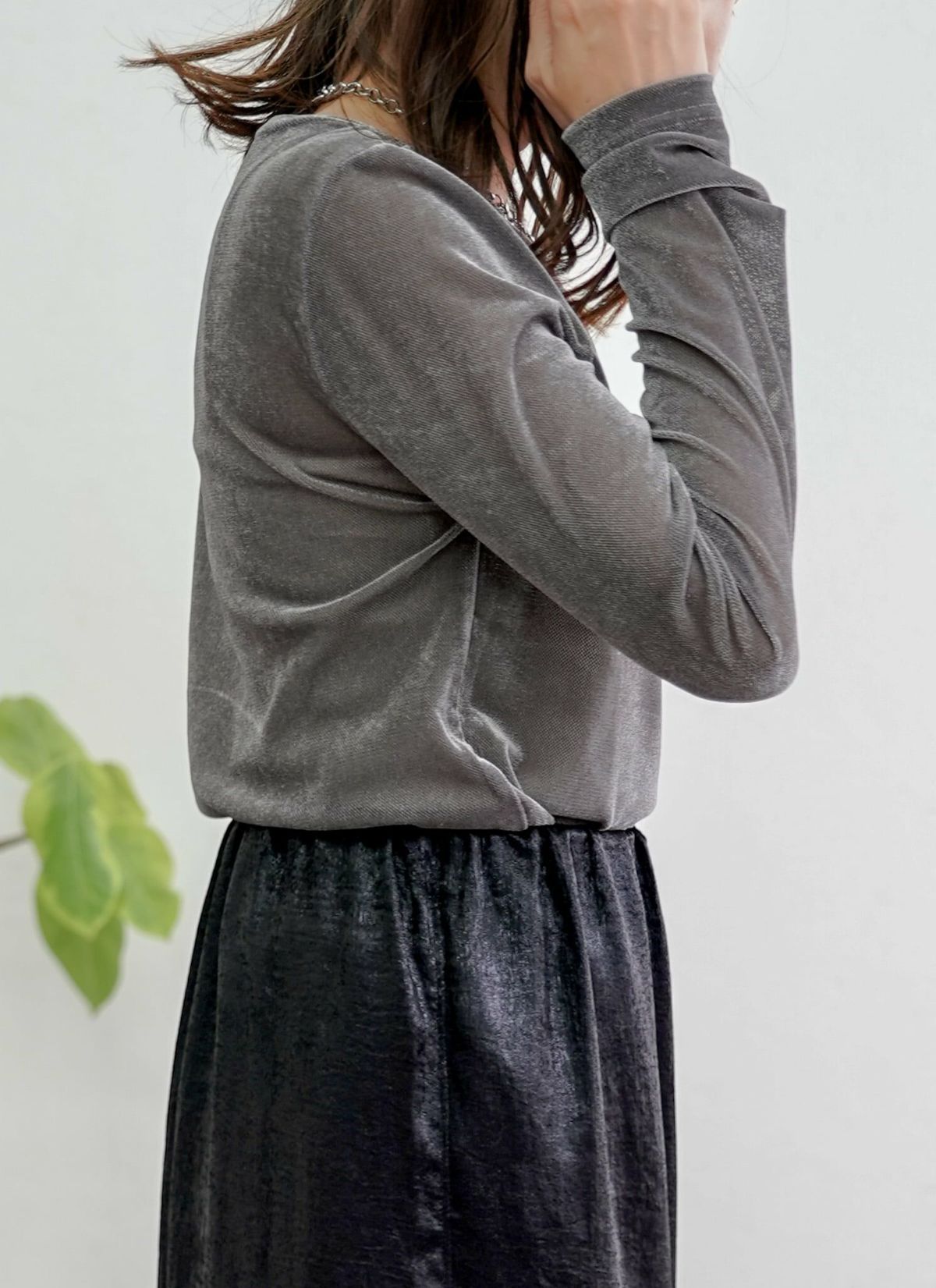revoam【ヘルシーさと上品さを兼ね備えた程よいシアー感のベロアトップス】 シアーベロアロングTシャツ