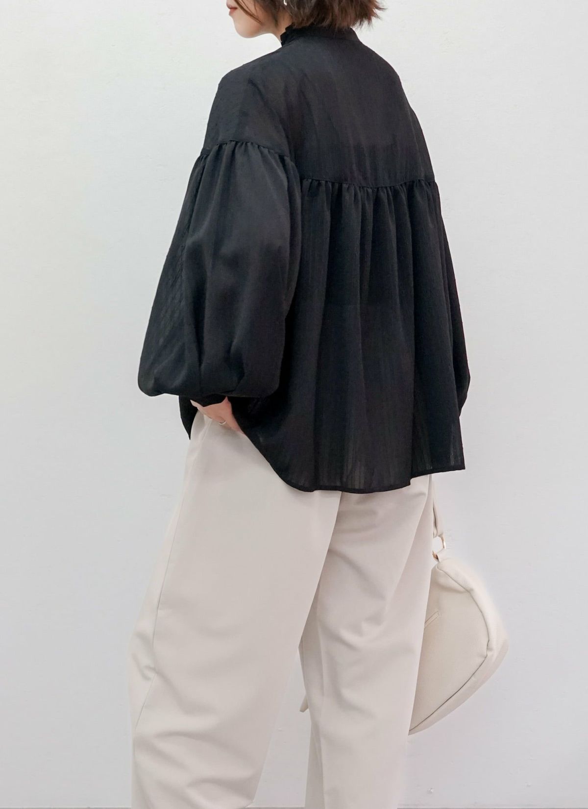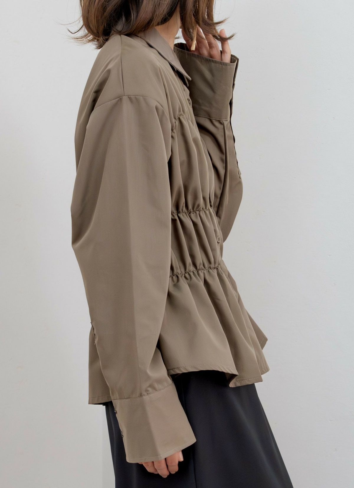 revoam【たっぷりとシャーリングが入った立体的なデザインのシャツ】 ブロードシャーリングブラウス