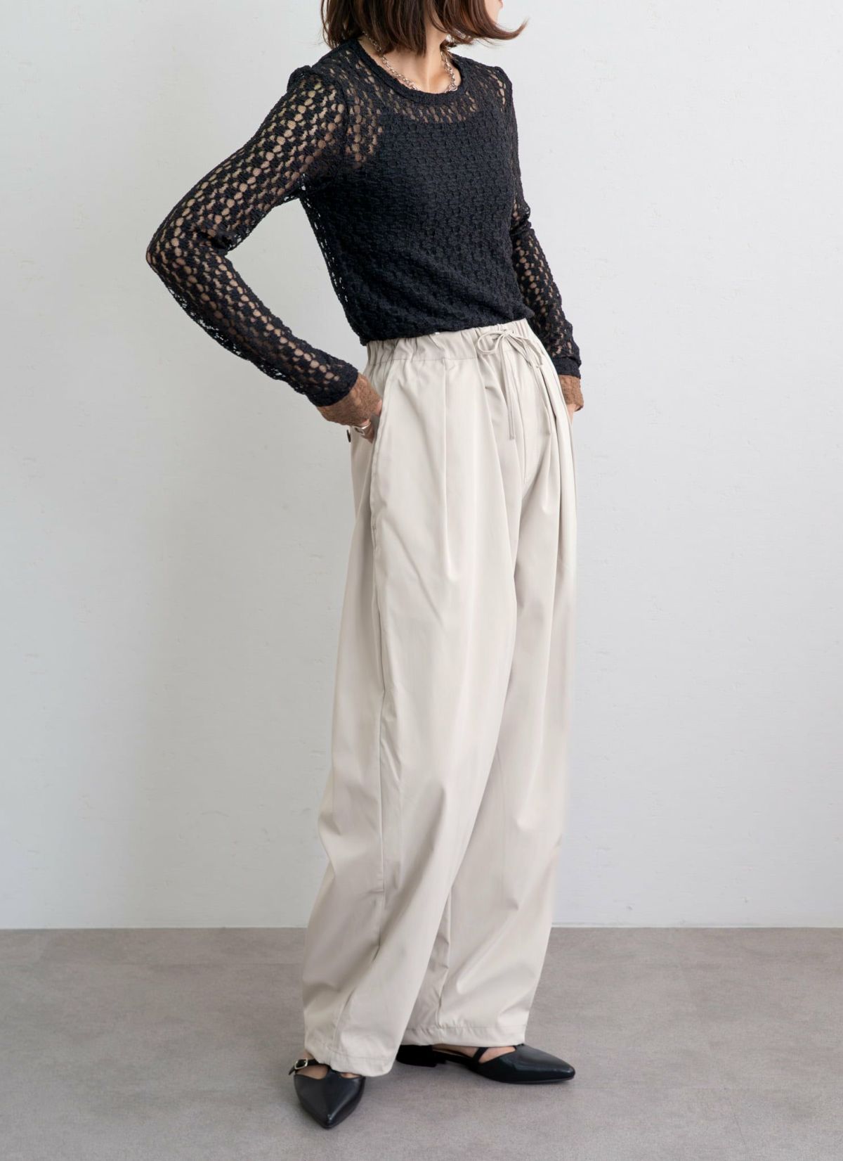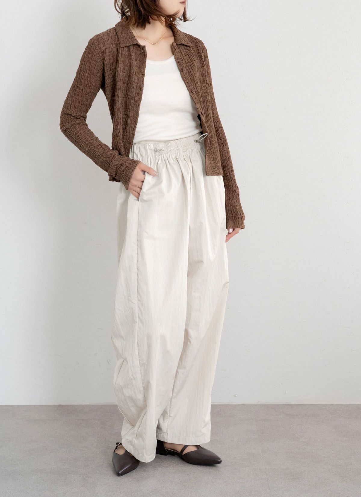 revoam【フォルムで魅せる、大人カジュアルなコクーンパンツ】 ウエストドローコードコクーンパンツ