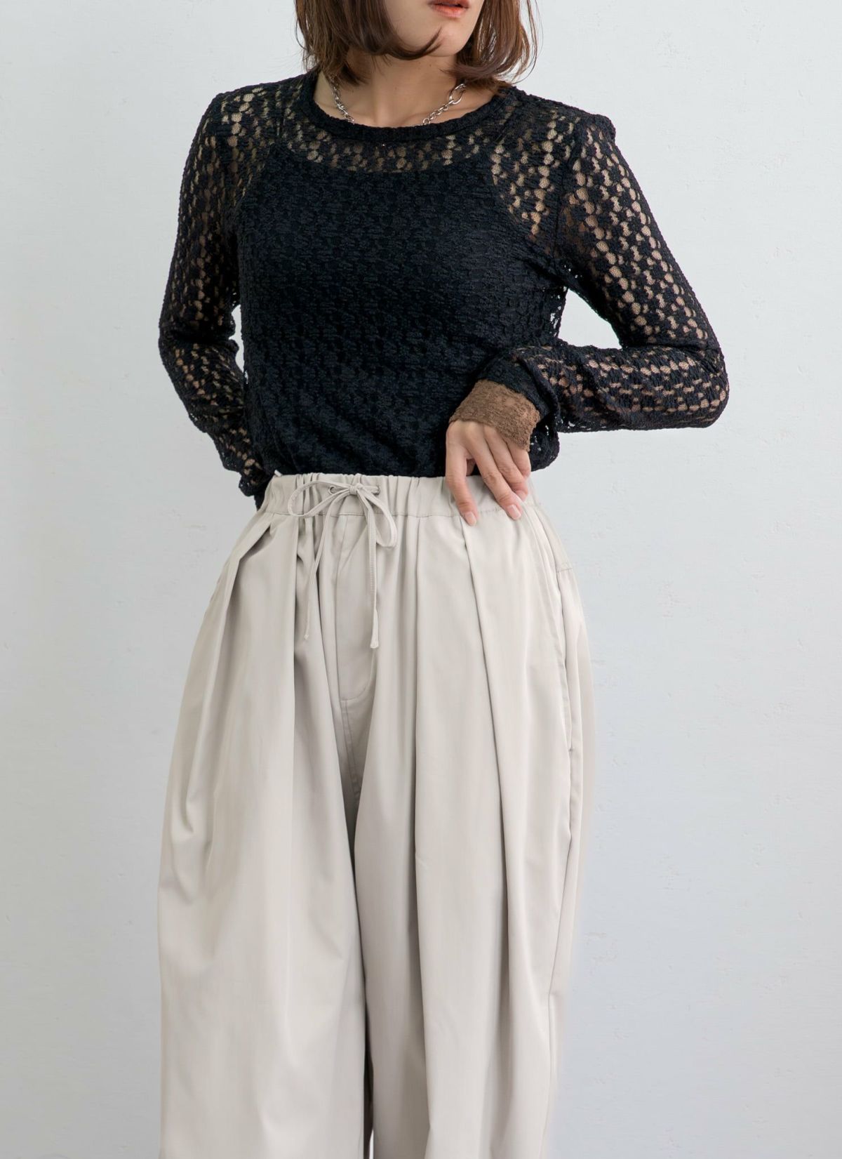 revoam【総レースの程よい透け感が、シンプルながらも華やかな印象に】 カットレース配色プルオーバー