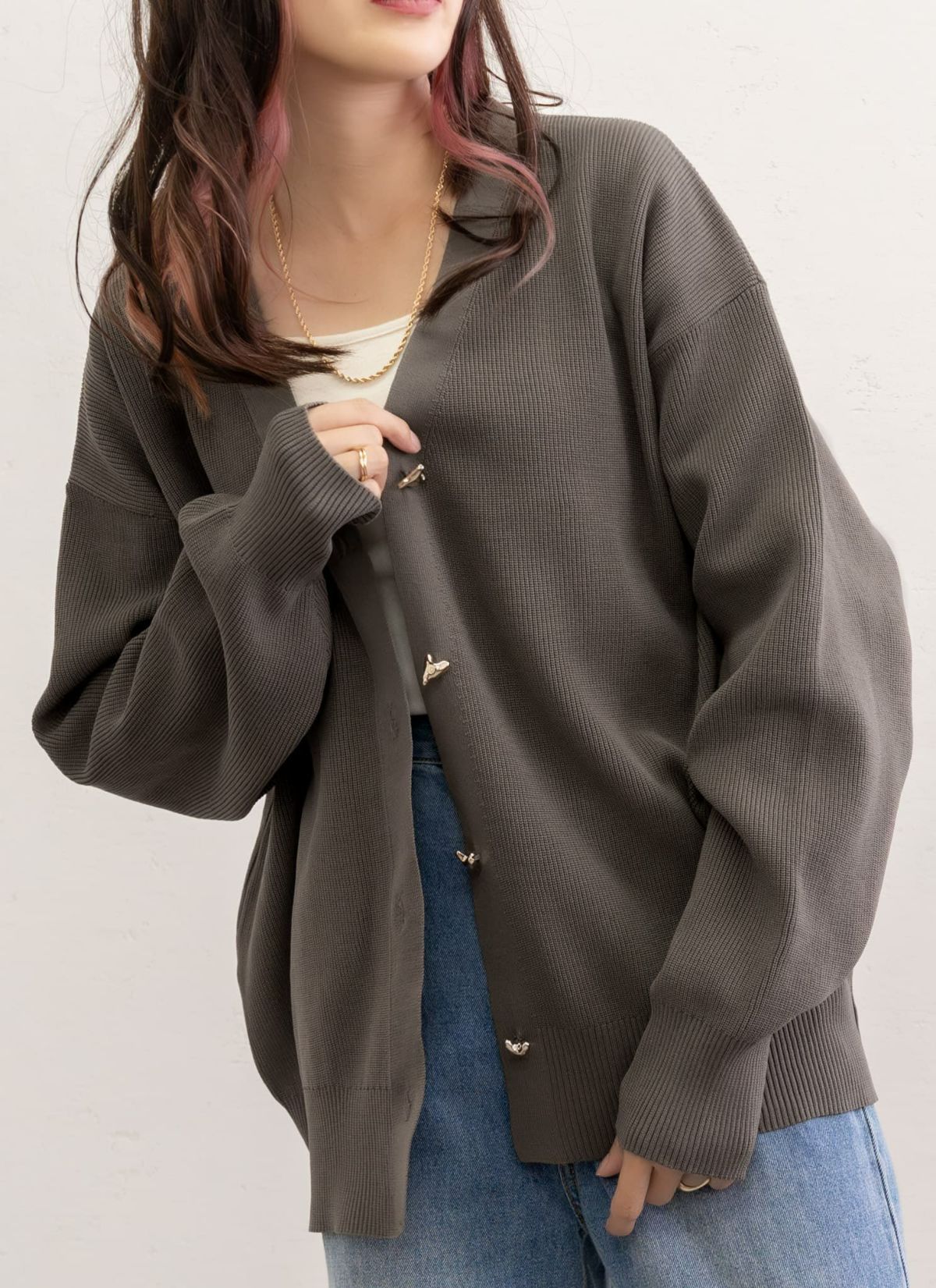 revoam【ほどよく甘さを添えたデザインのハートボタンカーディガン】 ハートボタンニットカーディガン
