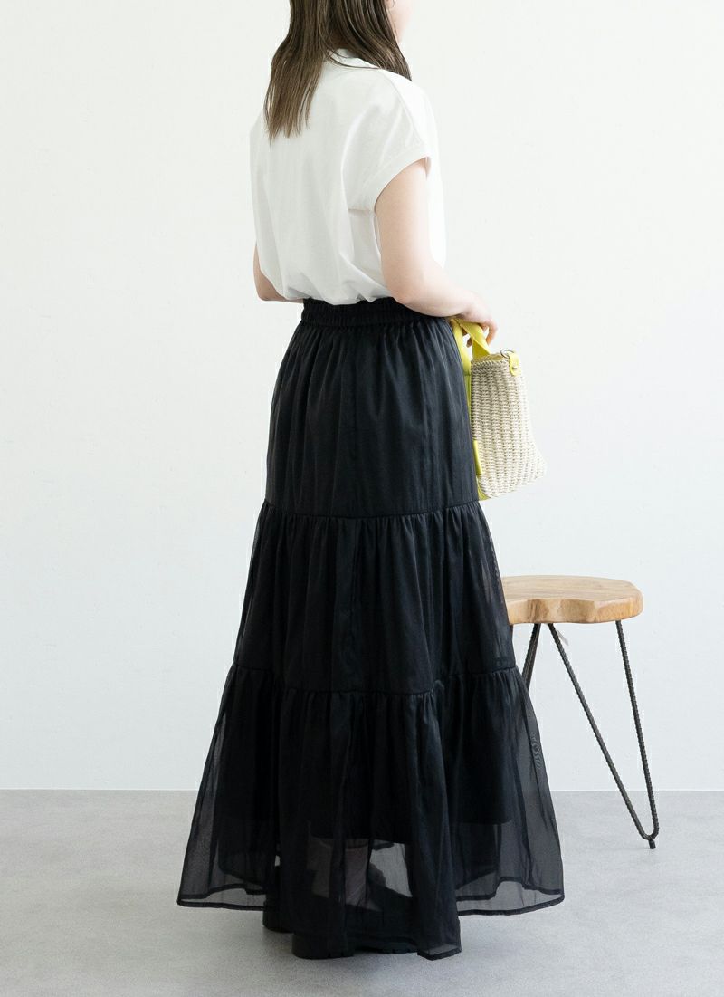 revoam【ふわっと広がるボリューム感が魅力。涼しげに揺れる、オーガンジースカート】 【30%OFF】ブロードオーガンジーティアードスカート