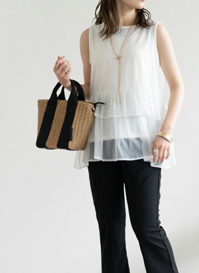 revoam【夏のおでかけにぴったり。 軽やかに持てる、大人のバイカラーかごバッグ】 【35%OFF】2WAY雑材ミニショルダー