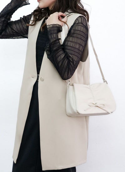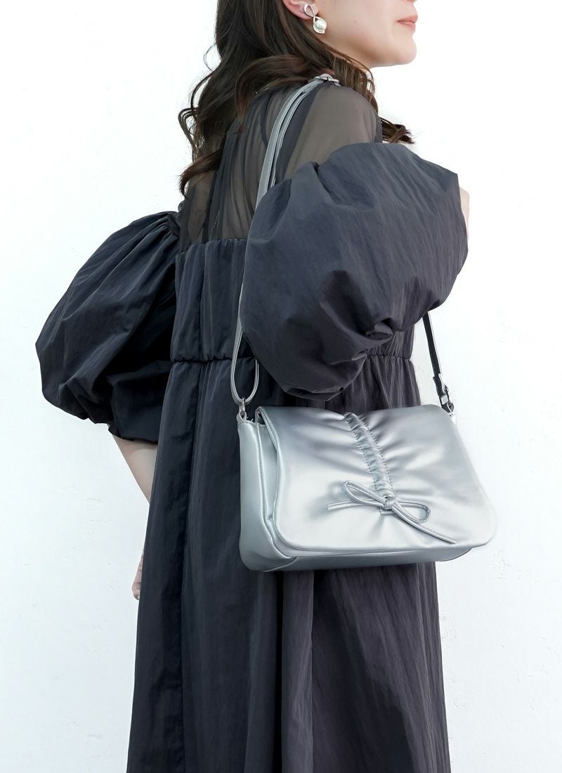 トレンドのギャザーとリボンデザインのショルダーバッグ!