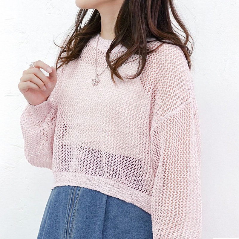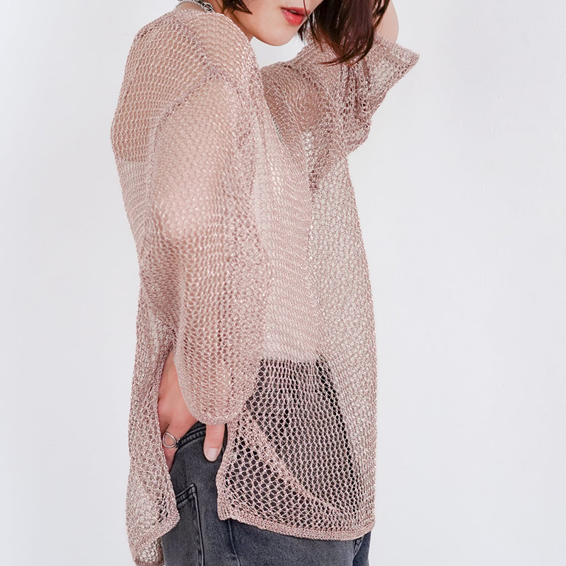 スパンコール入りのラメ糸を使用した、1枚で着映えするメッシュニット!