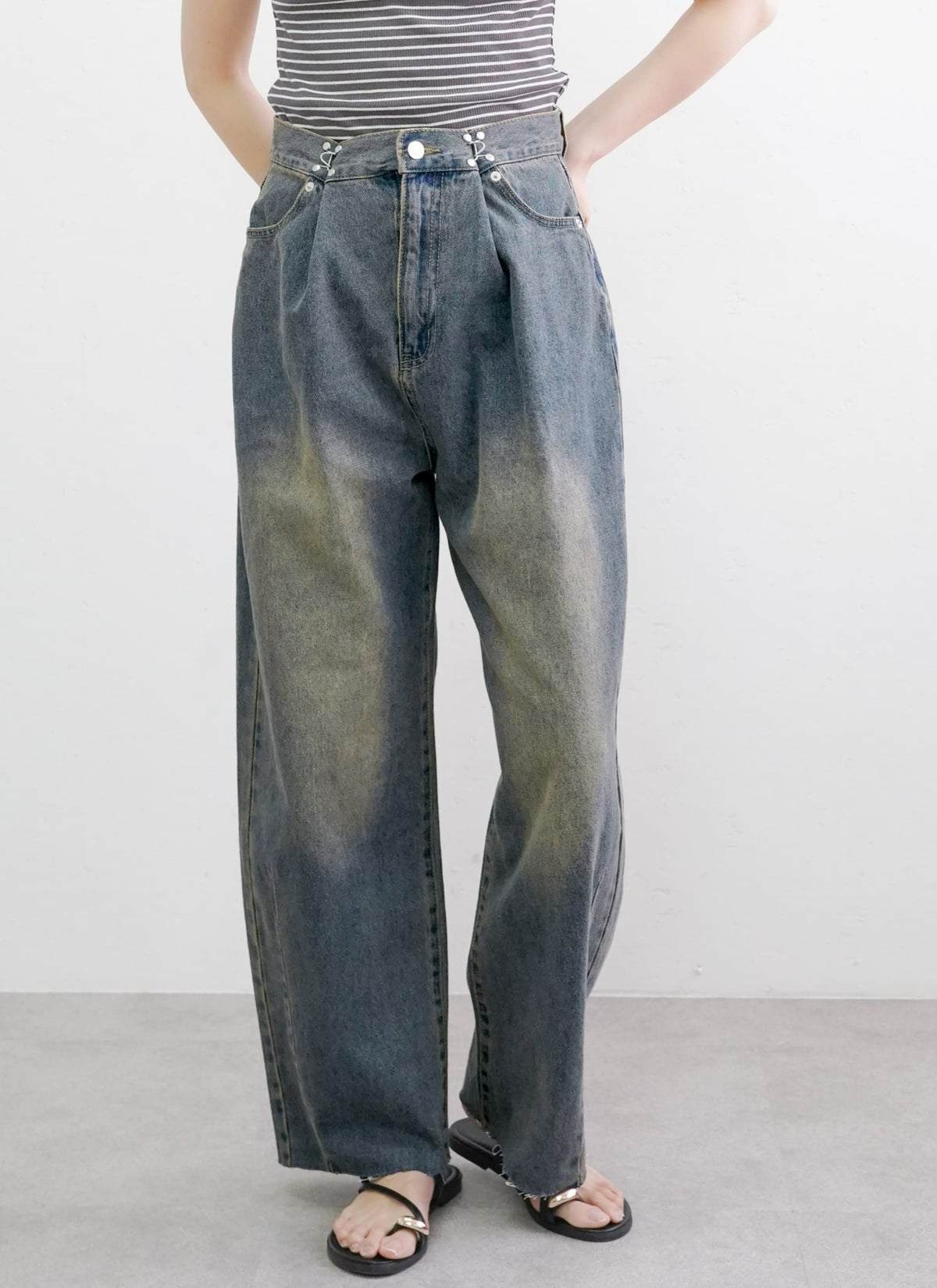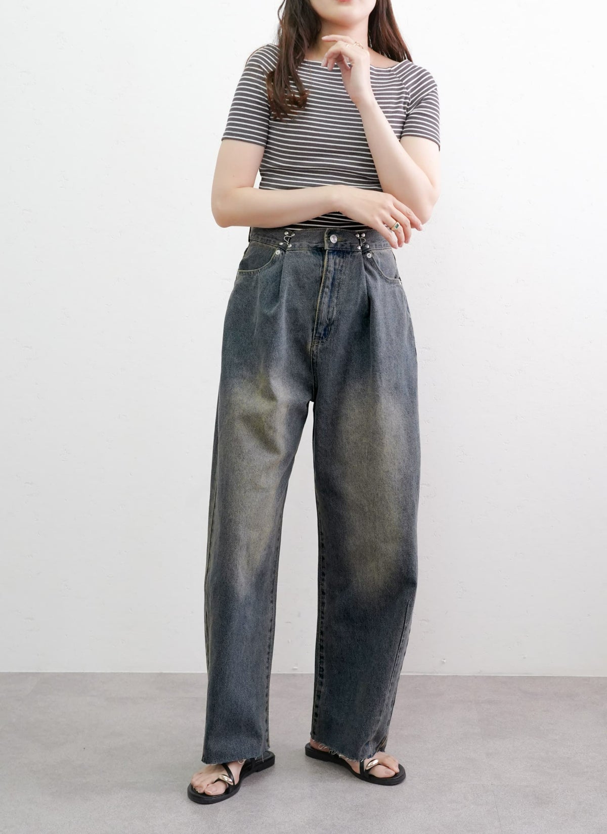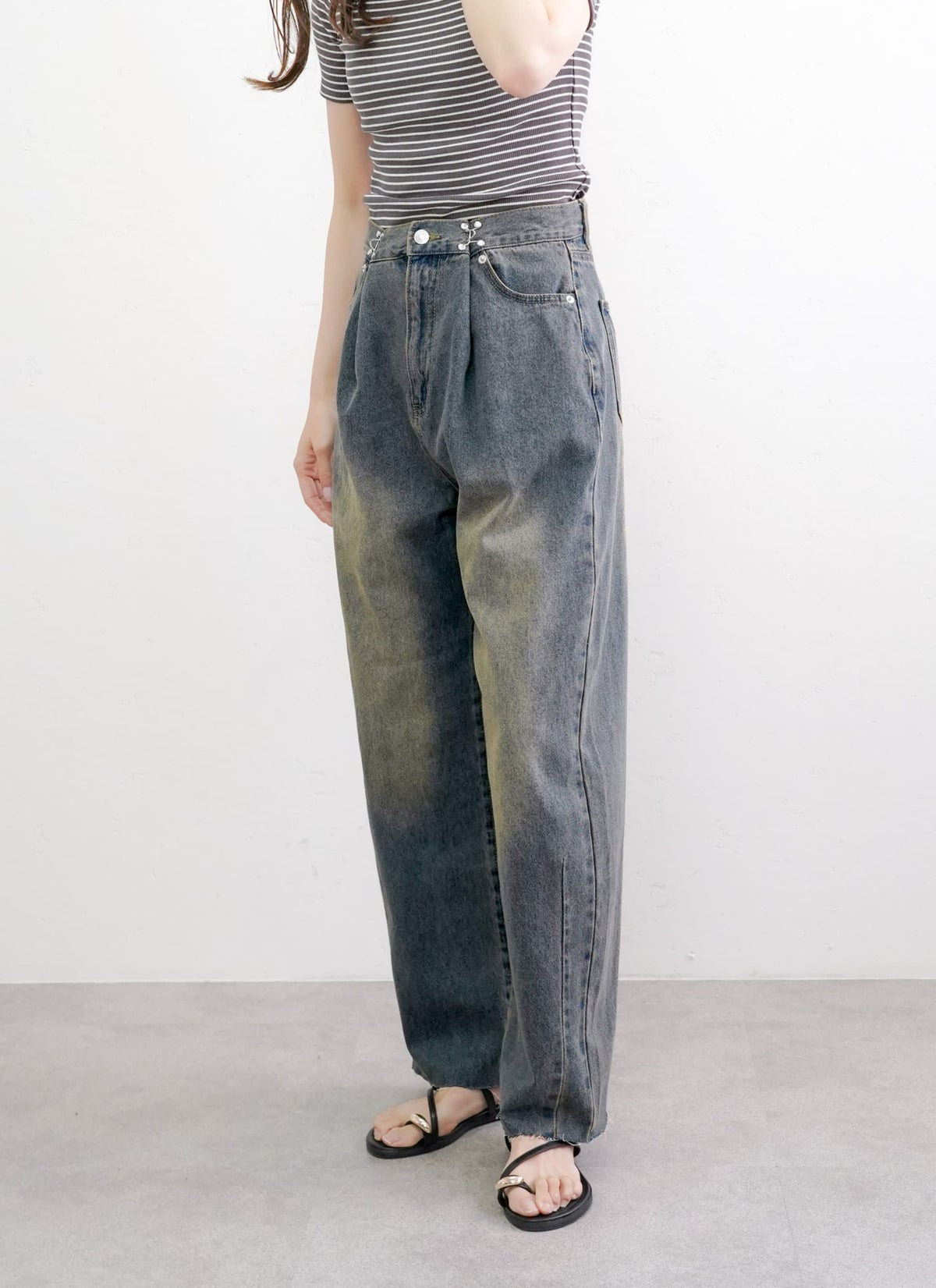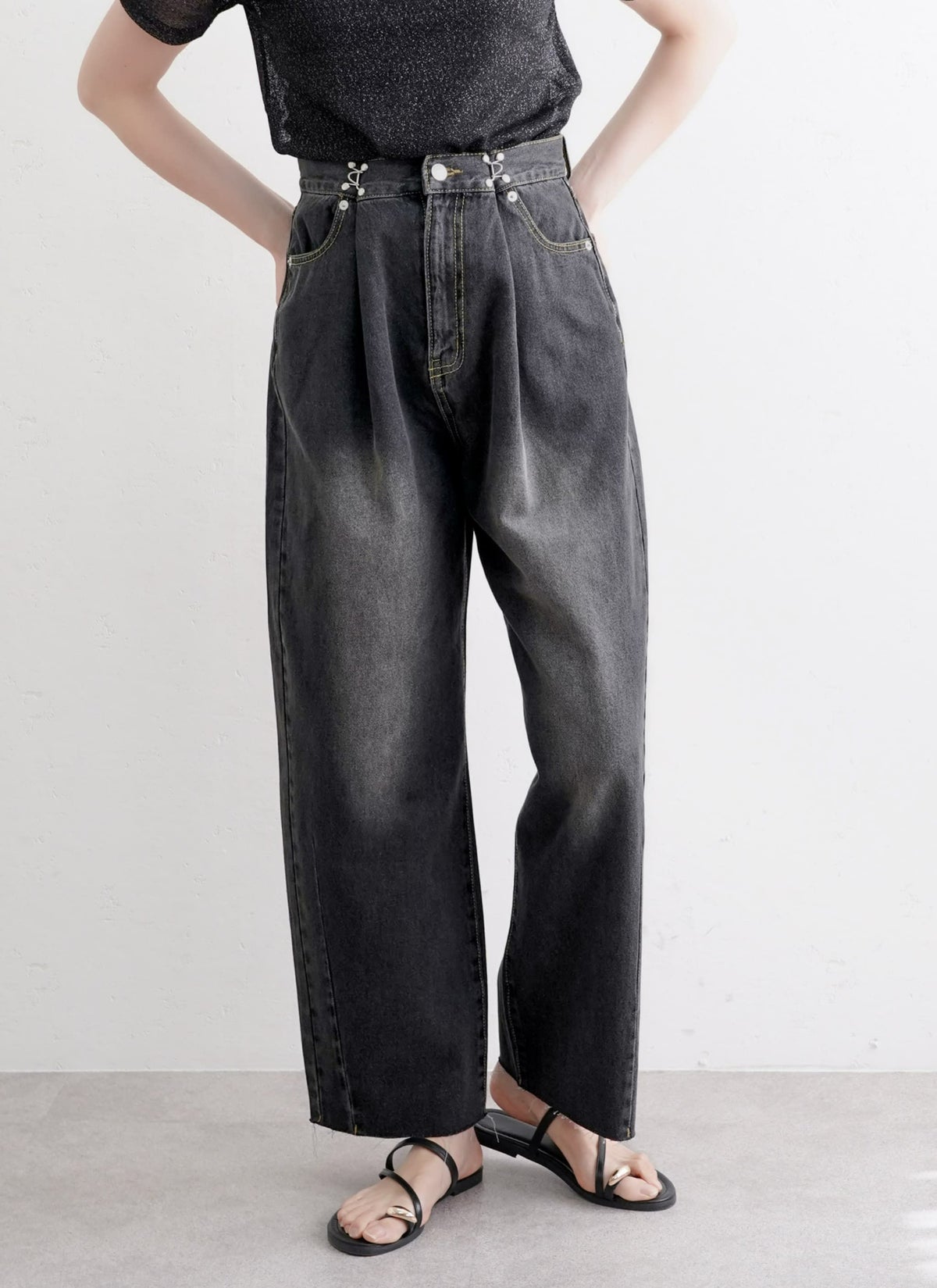 revoam【独特のカーブラインが魅力的なタックカーブデニムパンツ】 デニムタックカーブパンツ