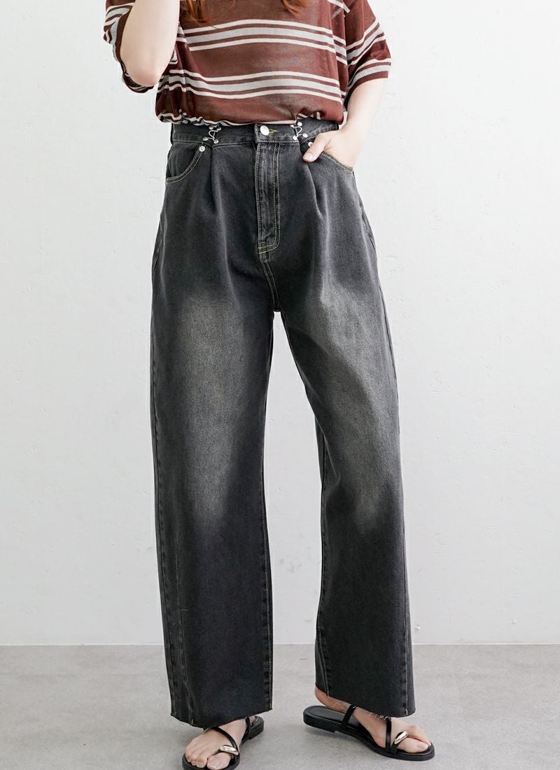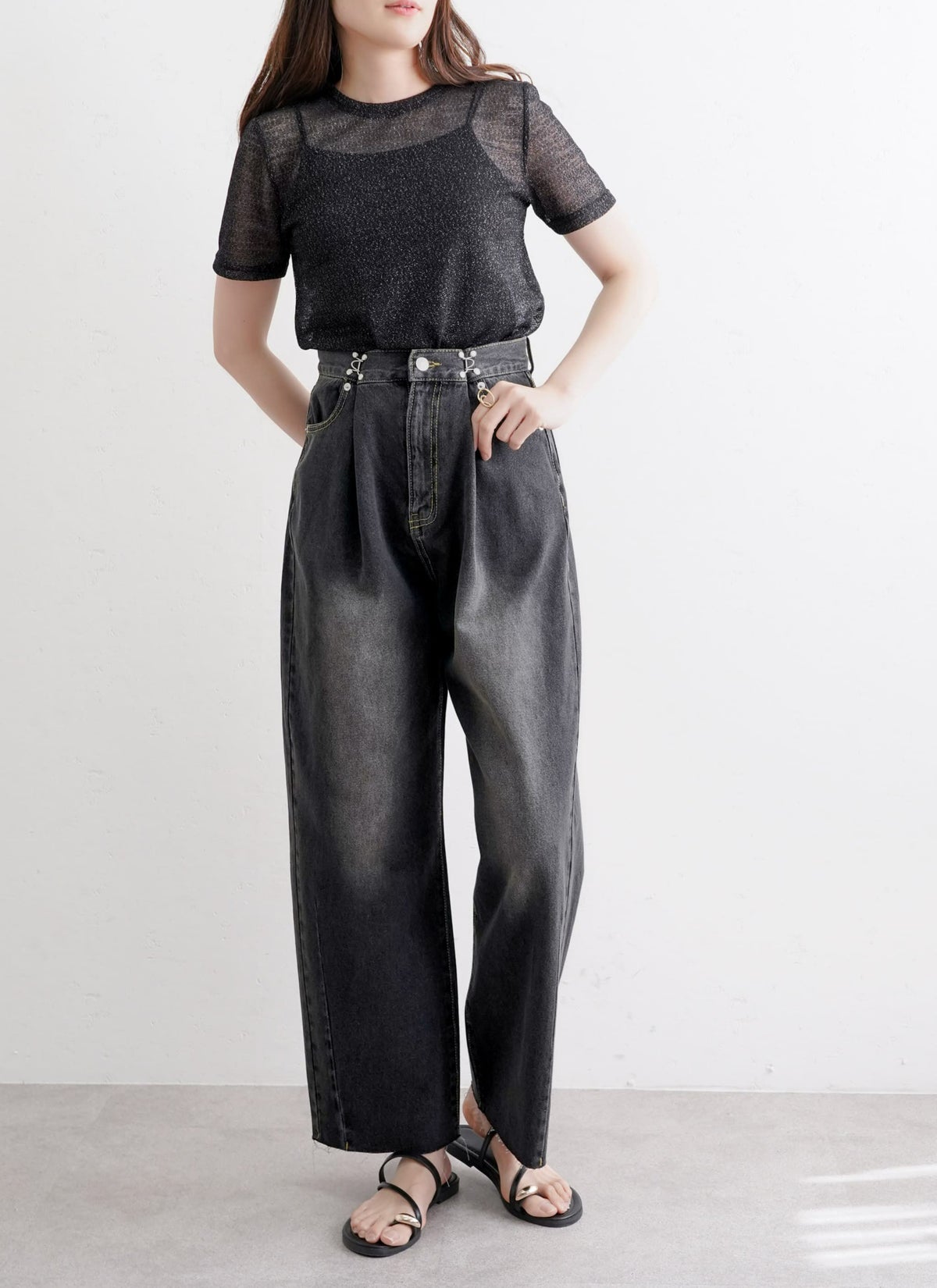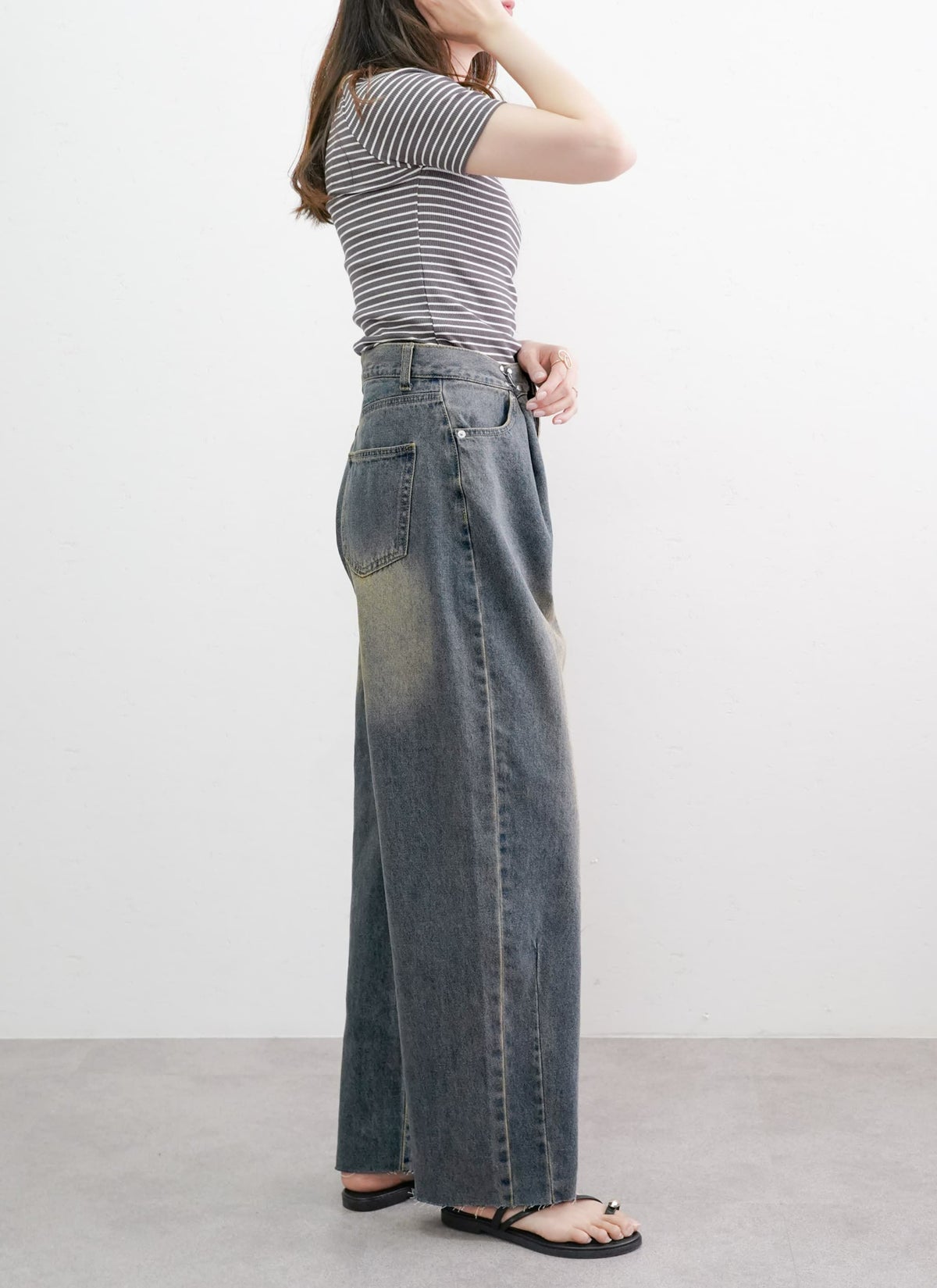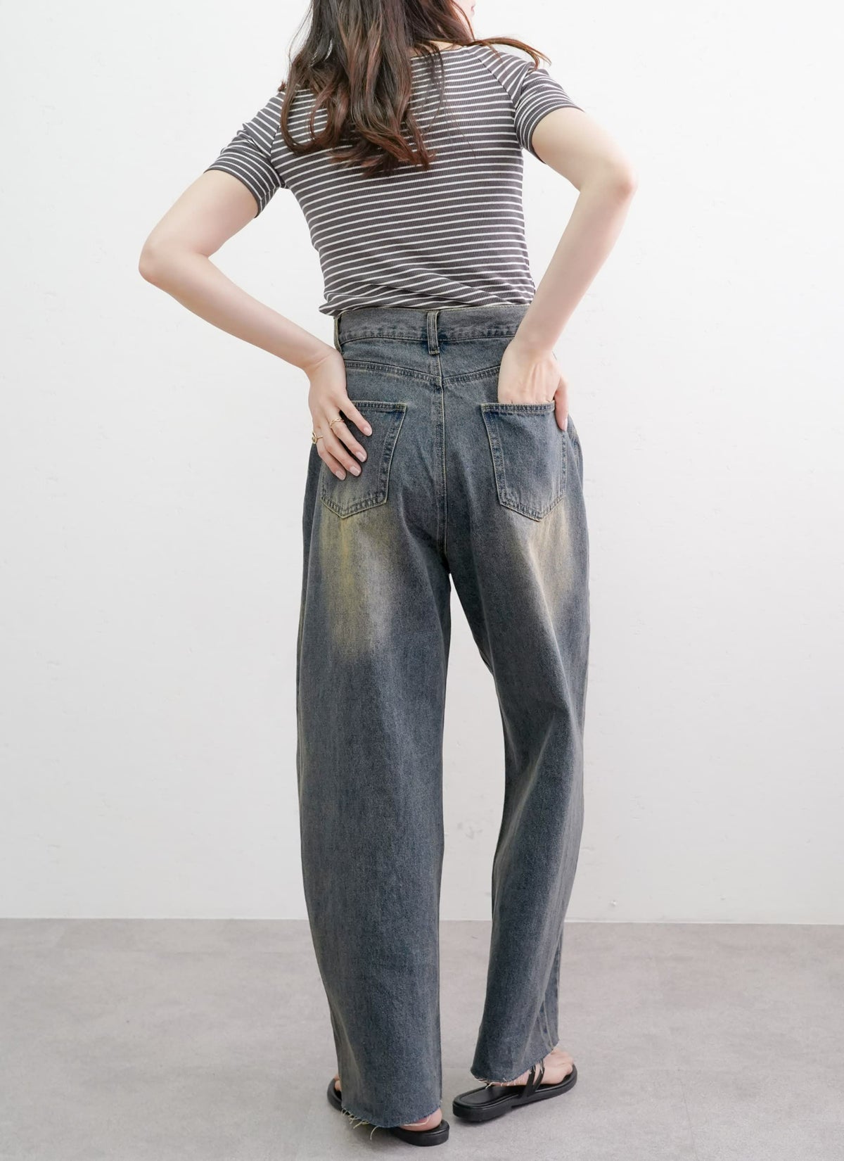 revoam【独特のカーブラインが魅力的なタックカーブデニムパンツ】 デニムタックカーブパンツ