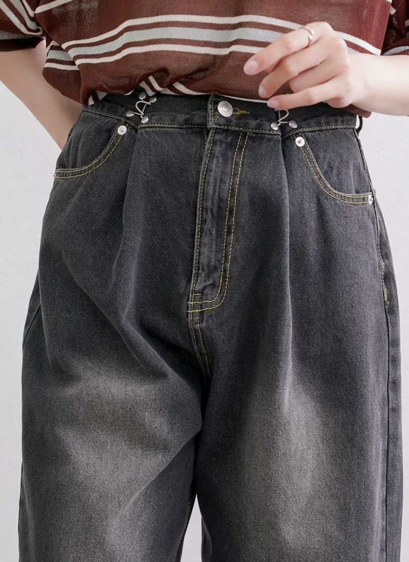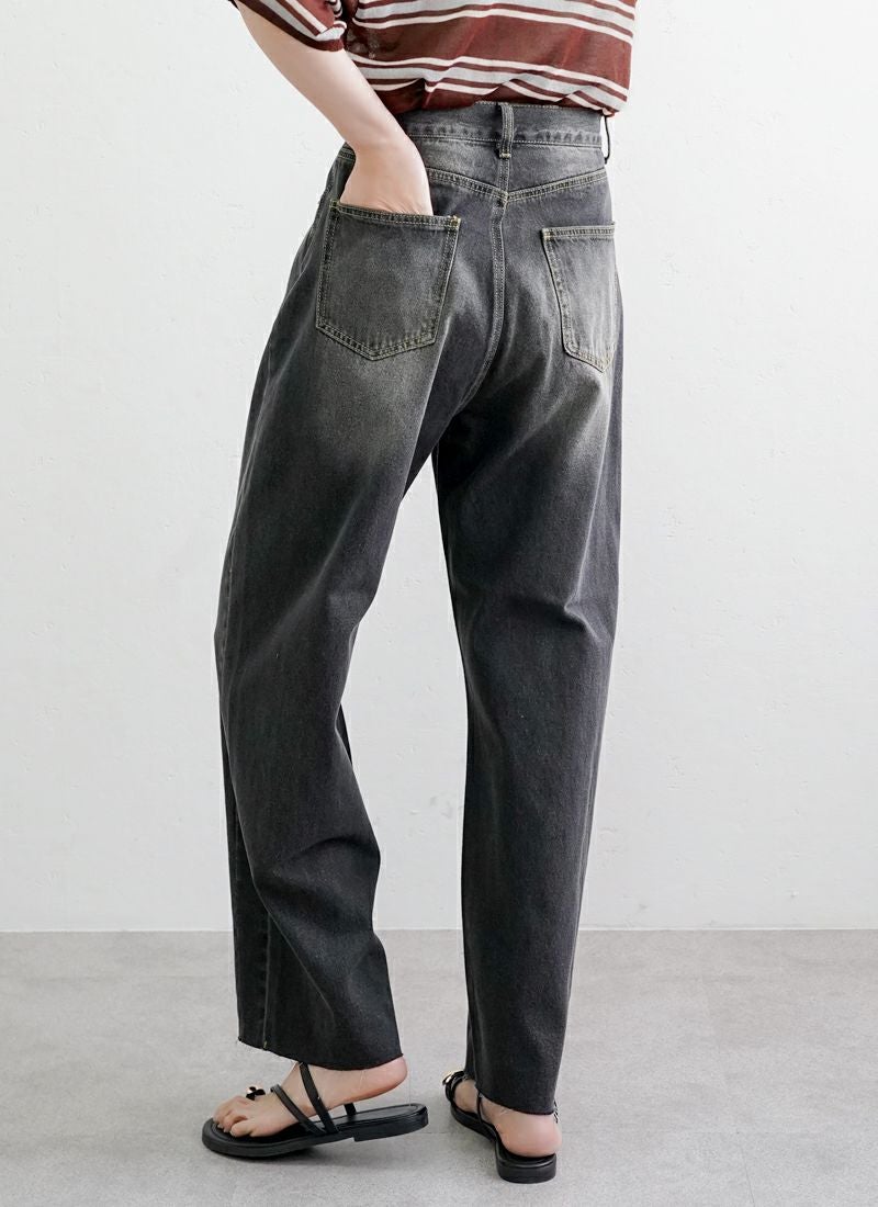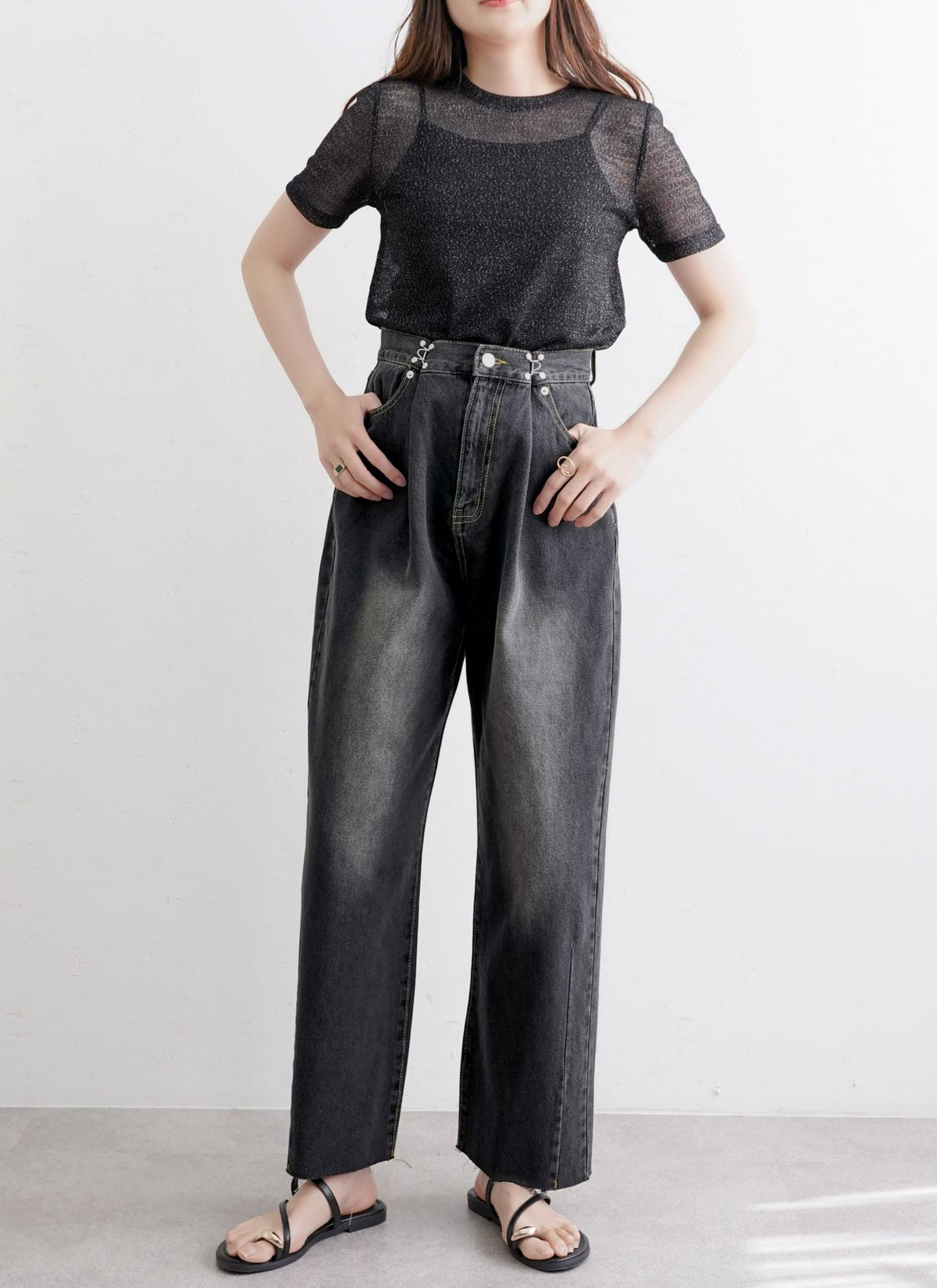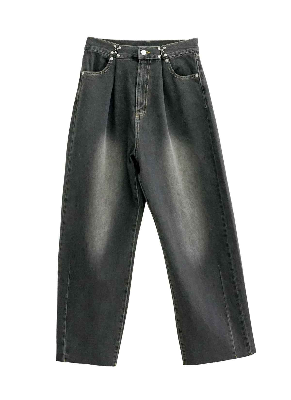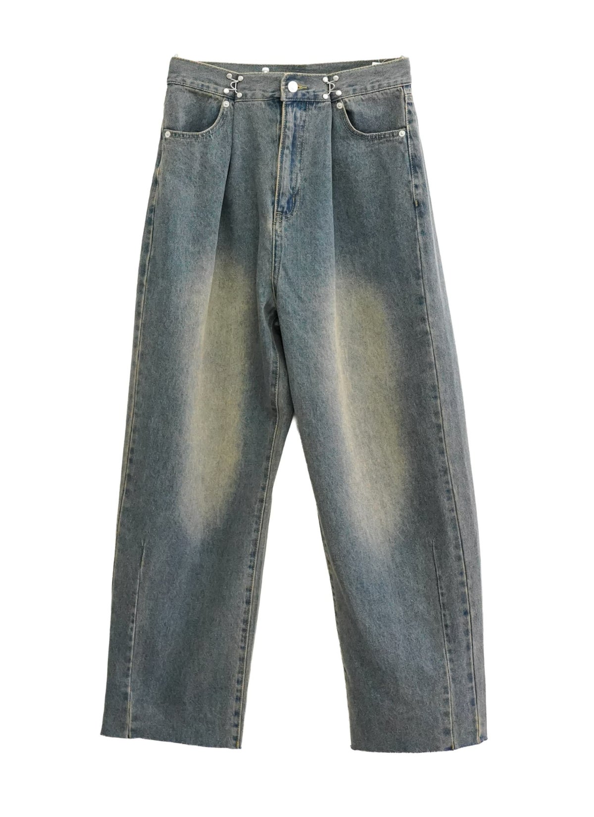revoam【独特のカーブラインが魅力的なタックカーブデニムパンツ】 デニムタックカーブパンツ