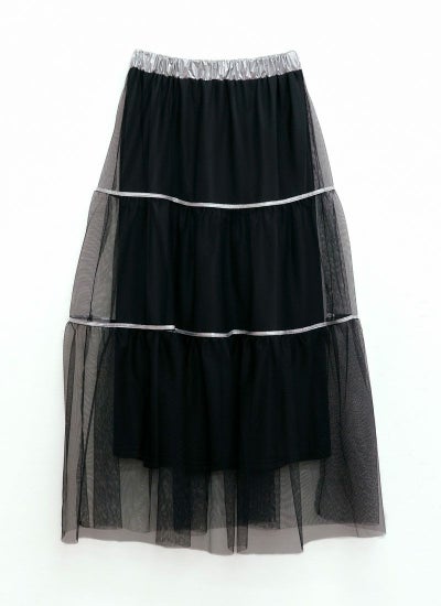 revoam【歩くたび、透け感ゆれる。大人に似合うティアードチュール】 【35%OFF】チュール×メタリックタフタ ティアードスカート