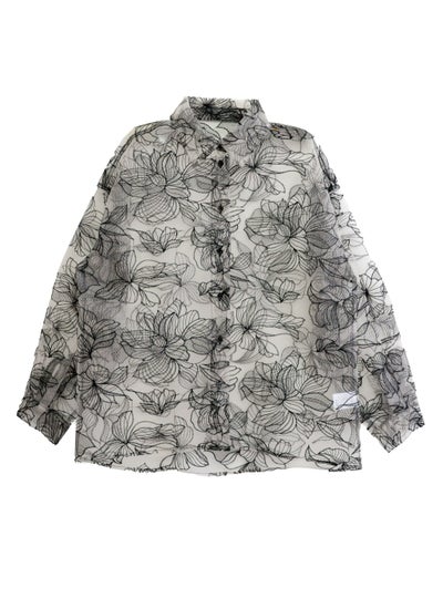 revoam【繊細な花柄刺繍が魅力のオーバーサイズシャツ 】 チュール花柄刺繍シャツ