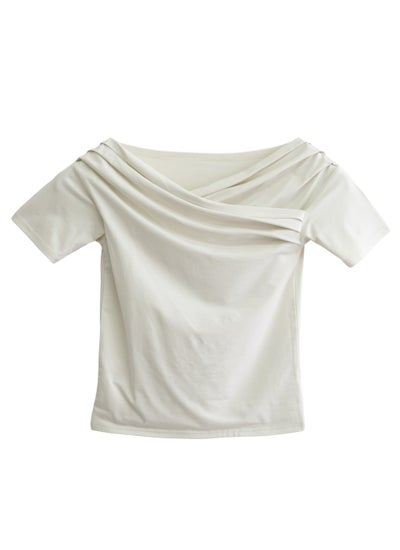 revoam【エレガントなクロスデザインが目を引くオフショルトップス◎ 】 ドレープオフショルプルオーバー