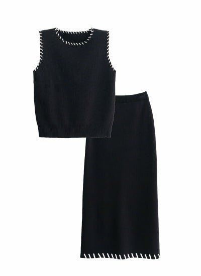 revoam【配色ステッチがポイントのセットアップアイテム】 レーヨン配色ステッチベストスカートSET