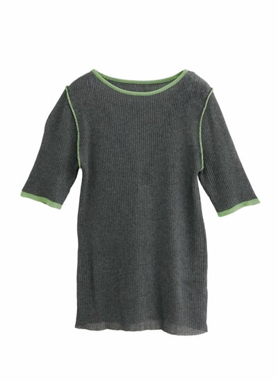 revoam【コーデに大活躍の配色プルオーバー】 麻タッチ配色デザインクルーネックトップス