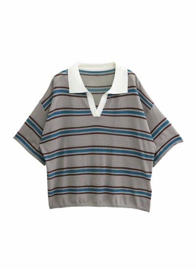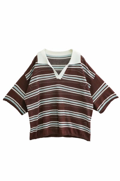 revoam【1枚でおしゃれ見え、ボーダーポロニット】 ボーダーポロニットプルオーバー