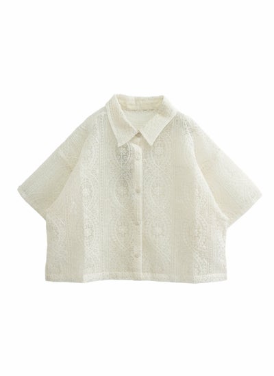 revoam【一枚で大人フェミニンを演出するレースシャツ】 レースハーフスリーブシャツ