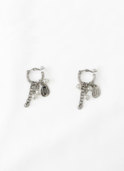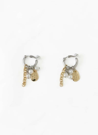 revoam【コイン風のプレートがポイントのイヤリング】 コインプレートチャームパールイヤリング