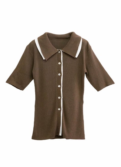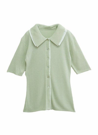 revoam【1枚でおしゃれ見え、配色ポロニット】 配色半袖ポロニットプルオーバー