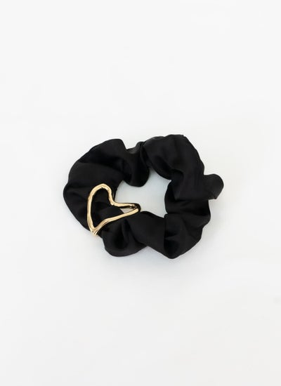 revoam【メタル素材のハートモチーフがアクセントのシュシュ】 メタルハートサテンシュシュ